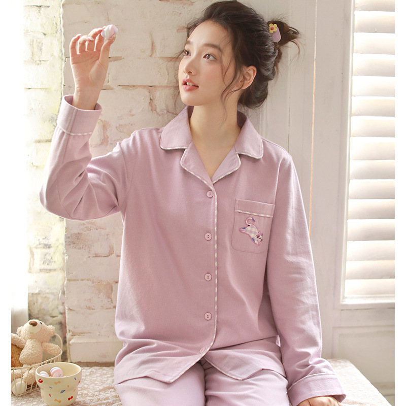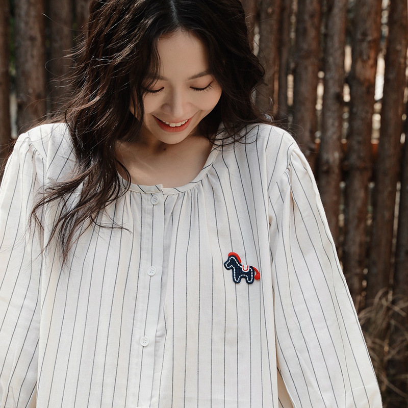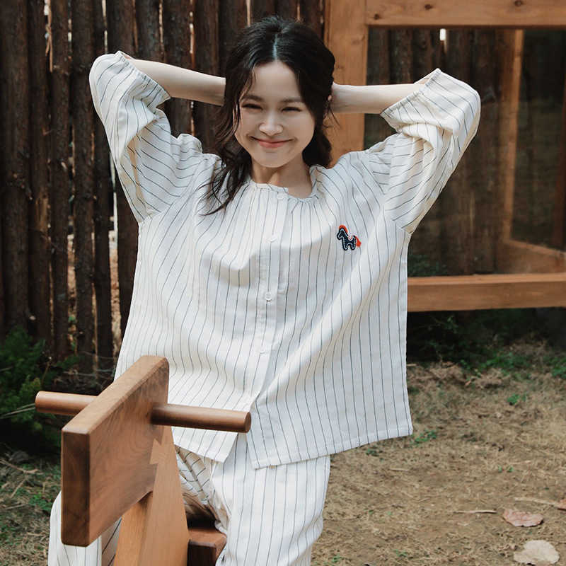 女款竹棉斜襟南笙印花長袖睡衣套裝