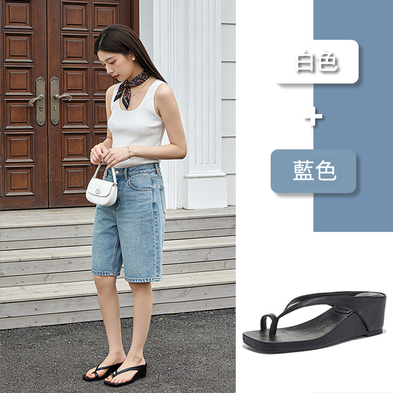 女夏夾腳半高人字拖鞋