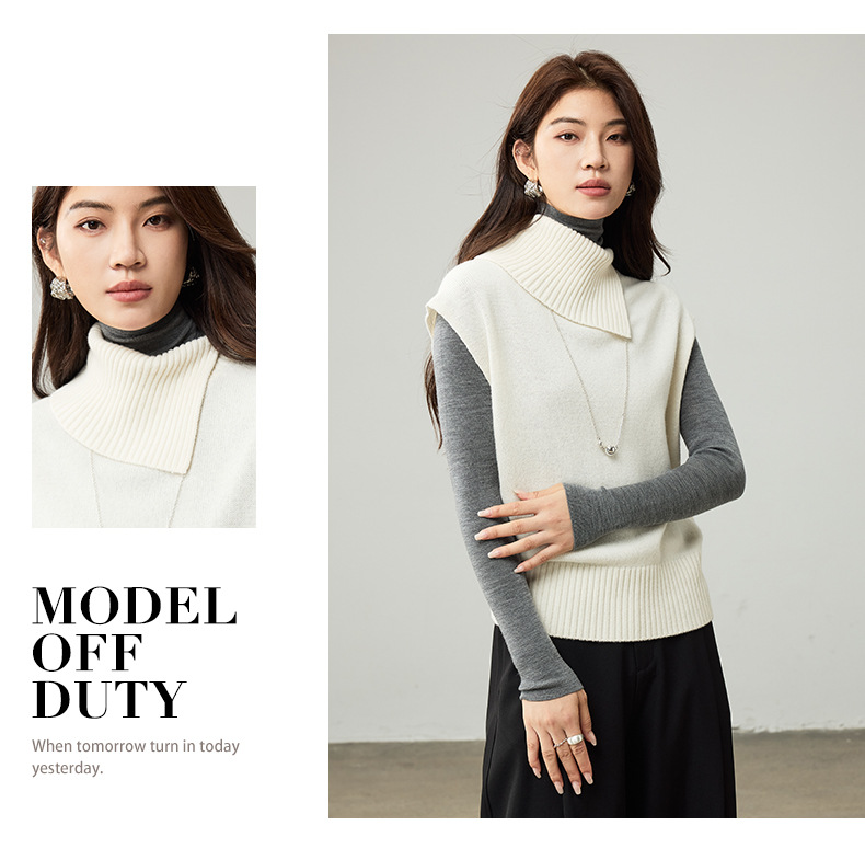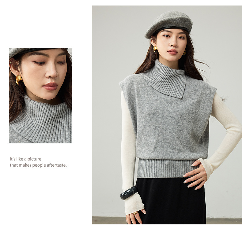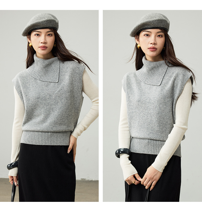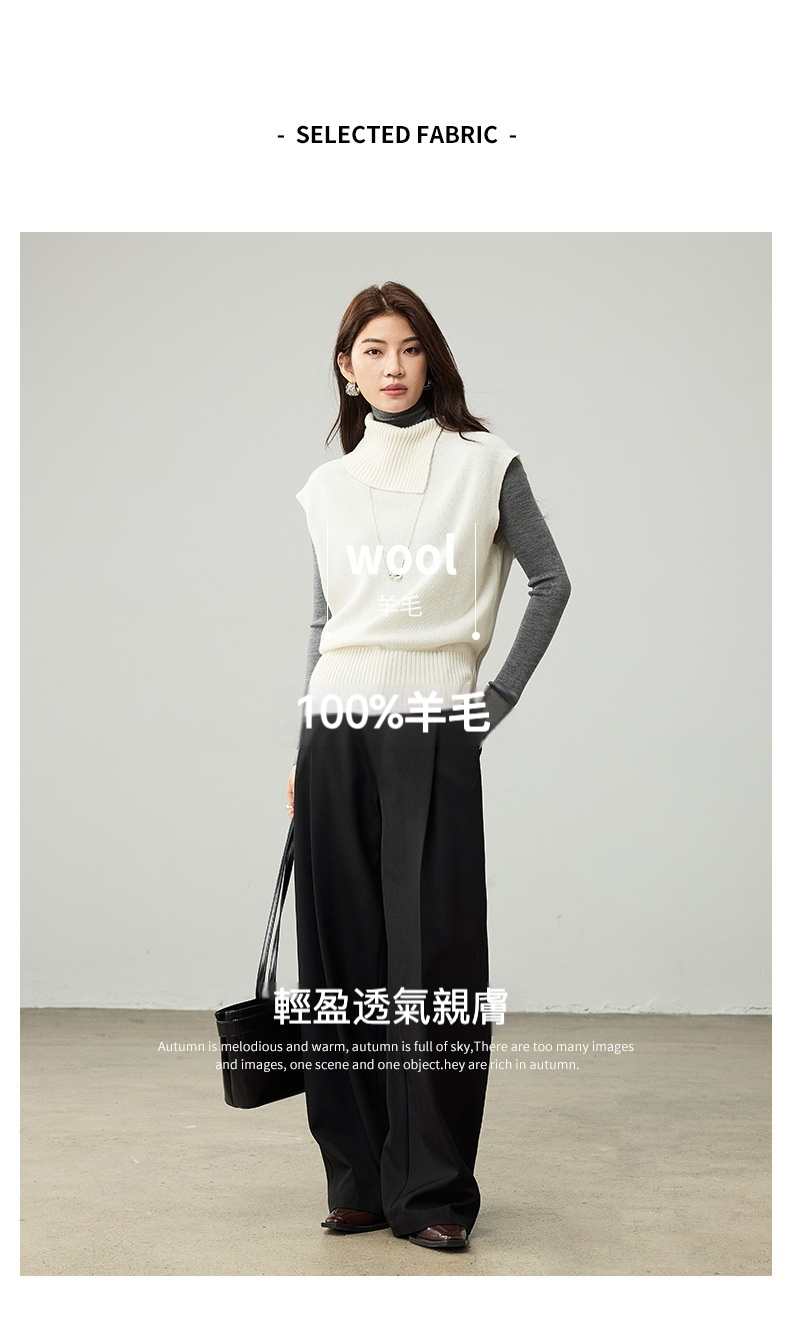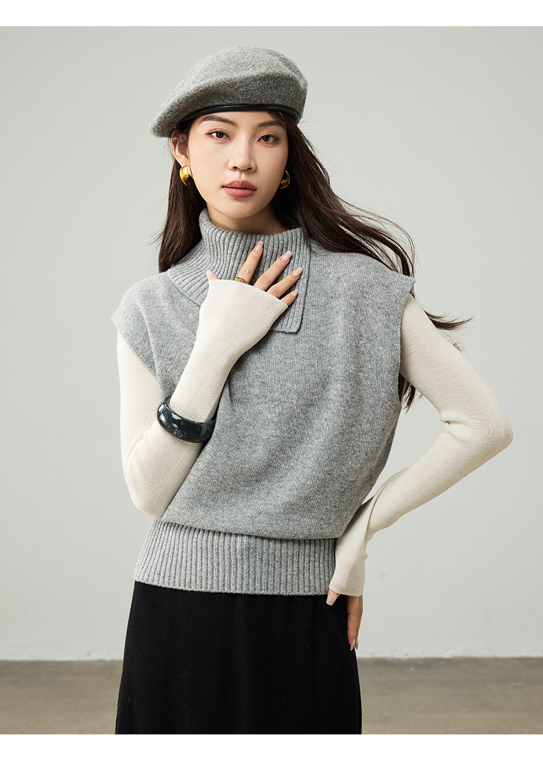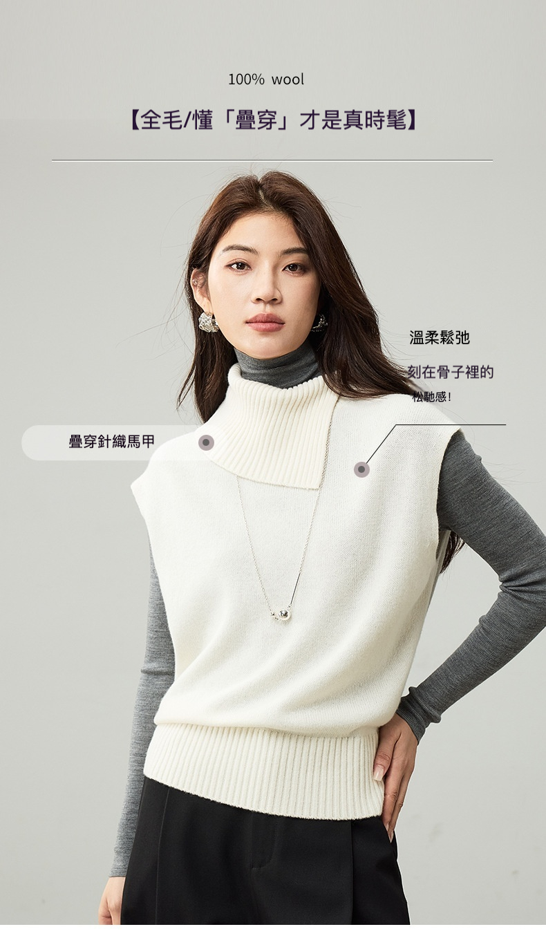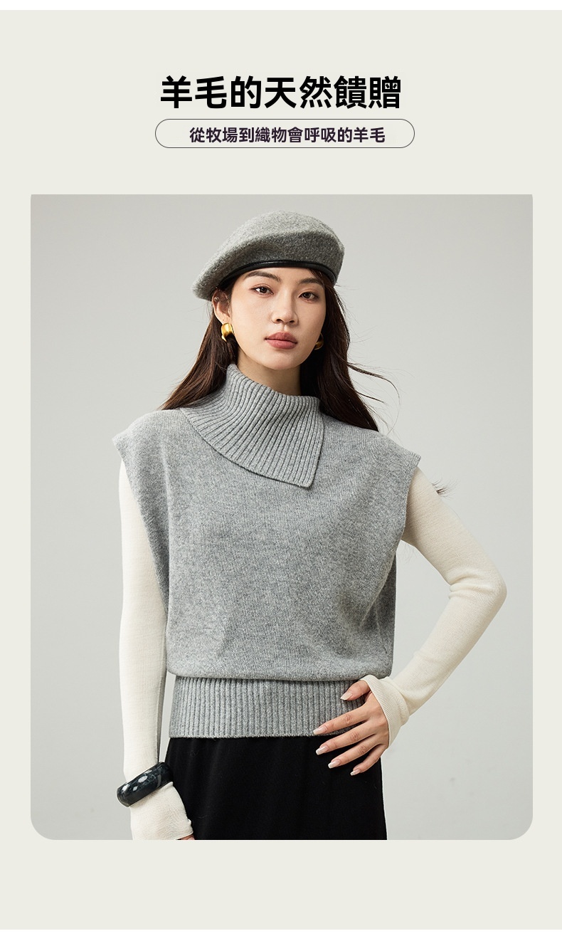 女士春秋100%羊毛翻領針織馬甲