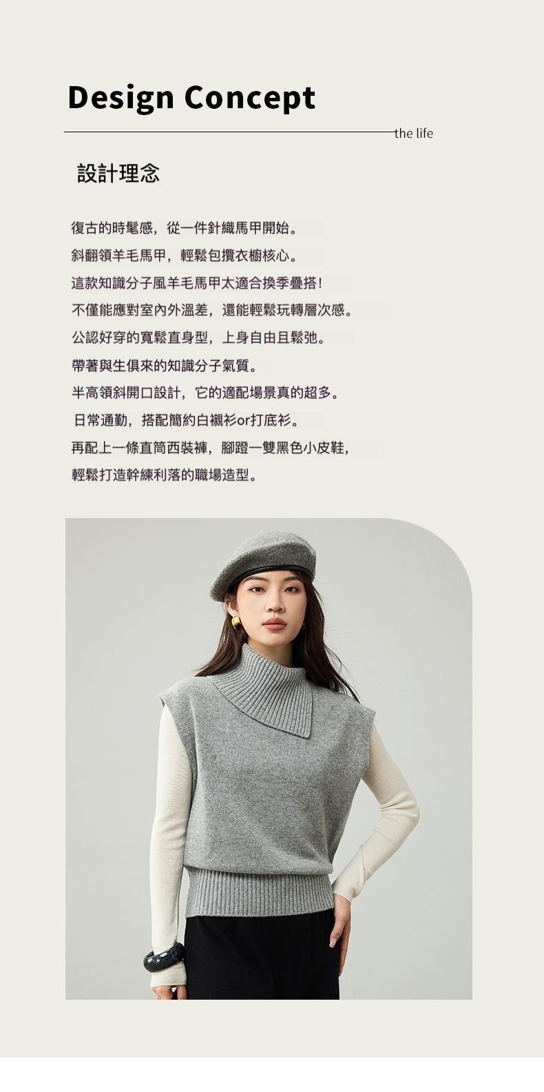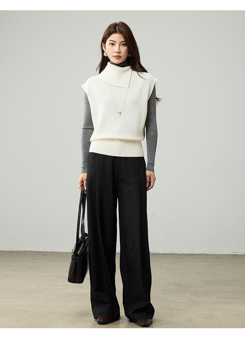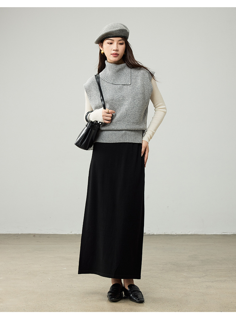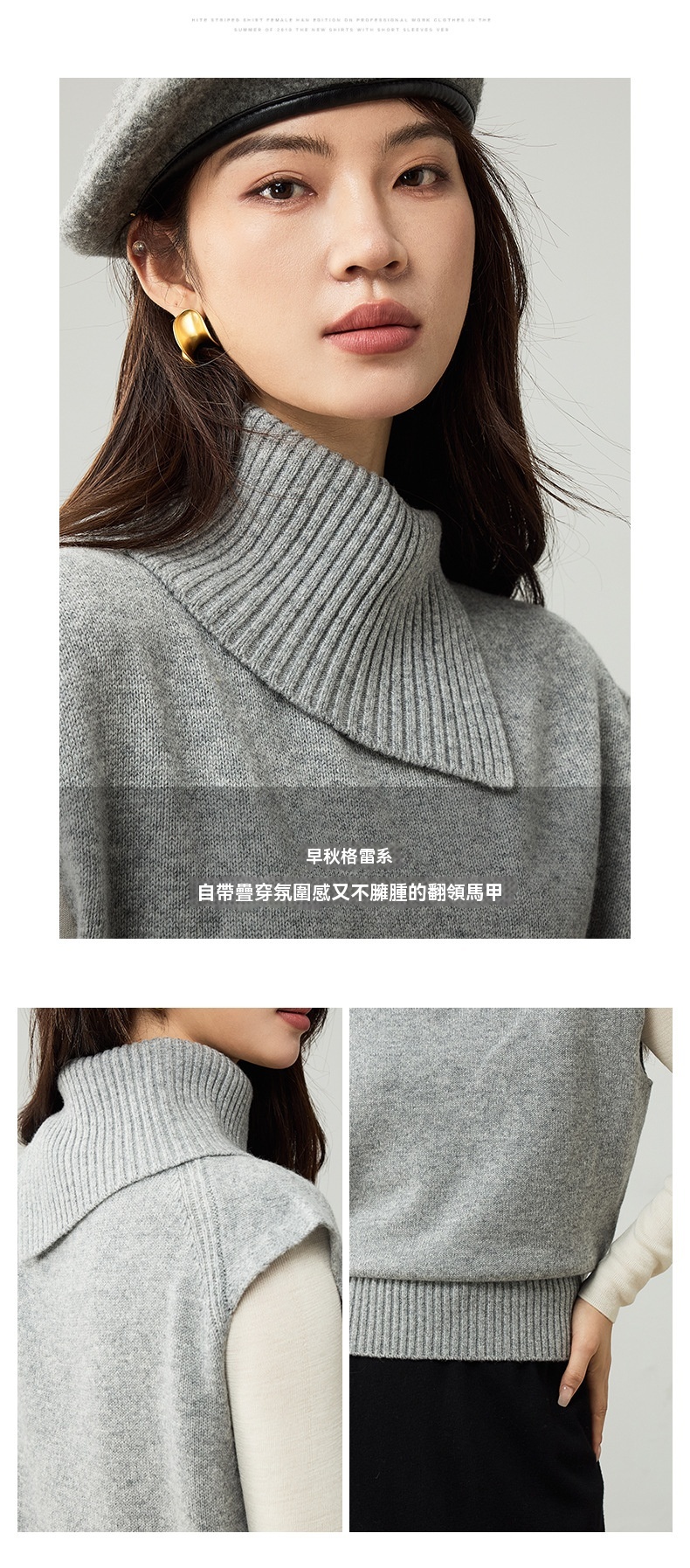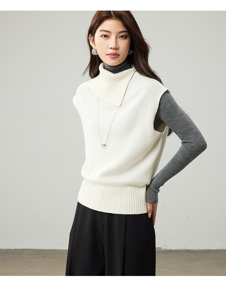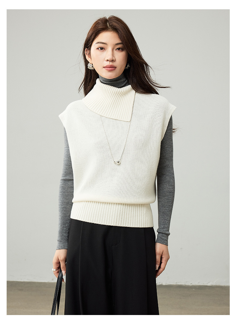 女士春秋100%羊毛翻領針織馬甲