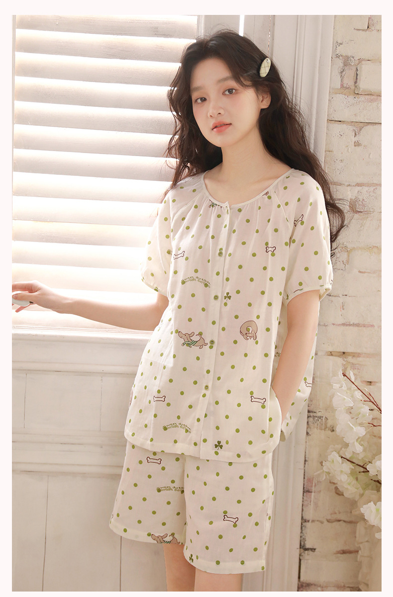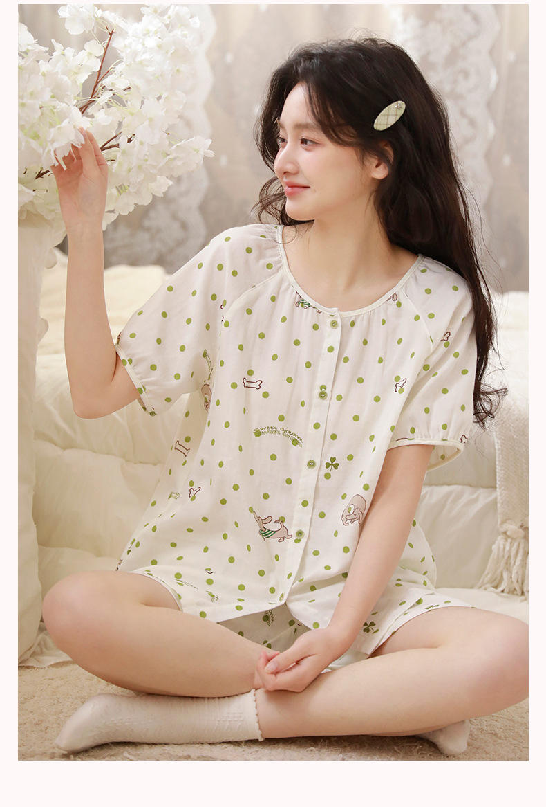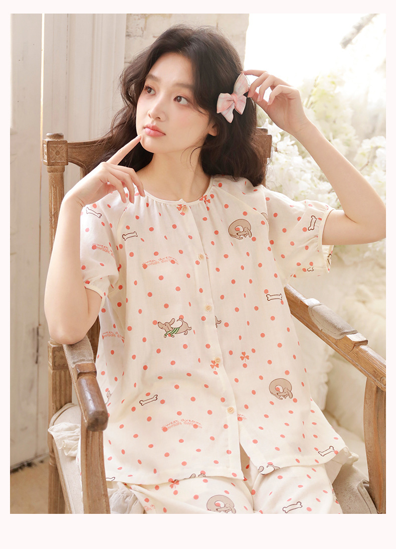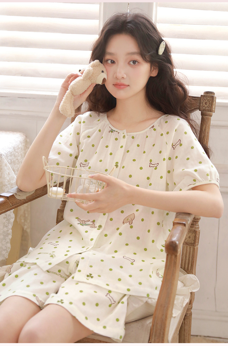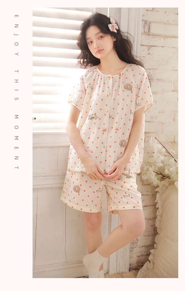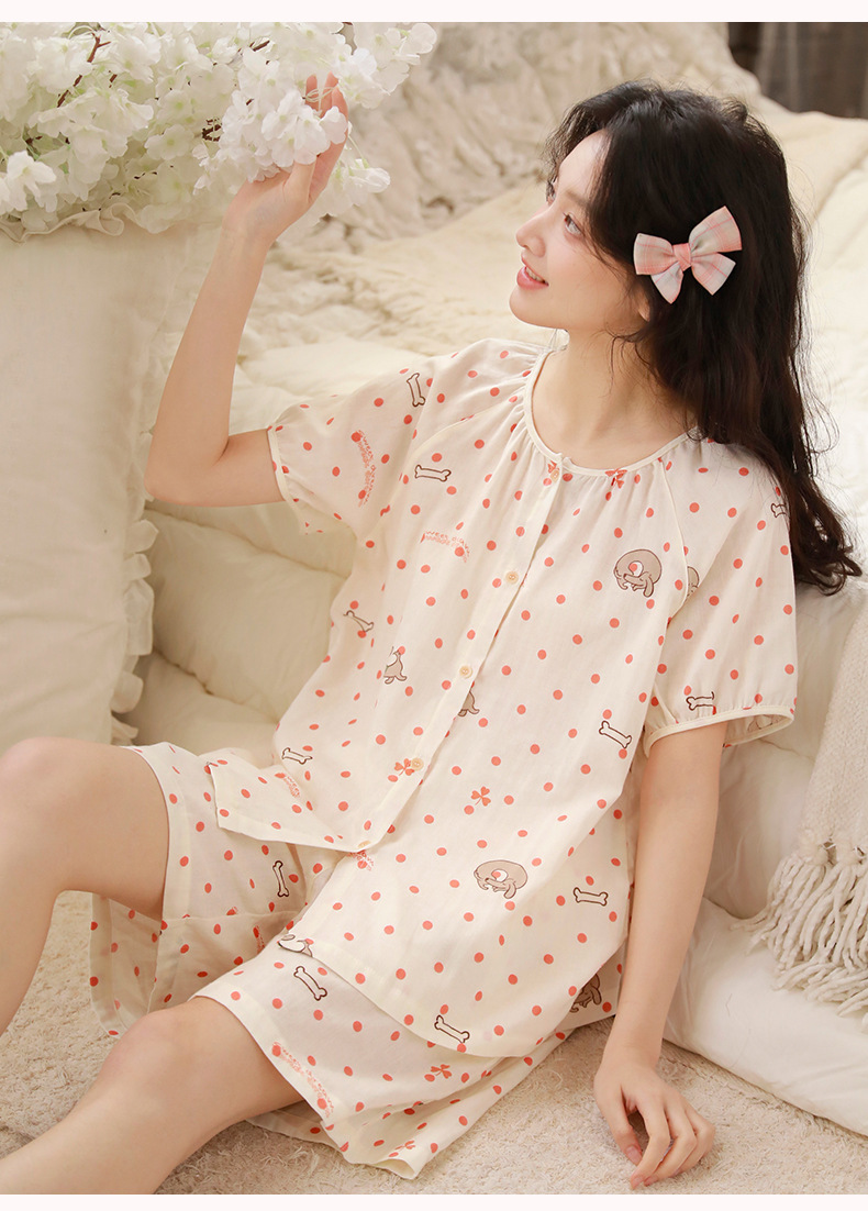 夏棉纱骨頭短袖短褲家居服