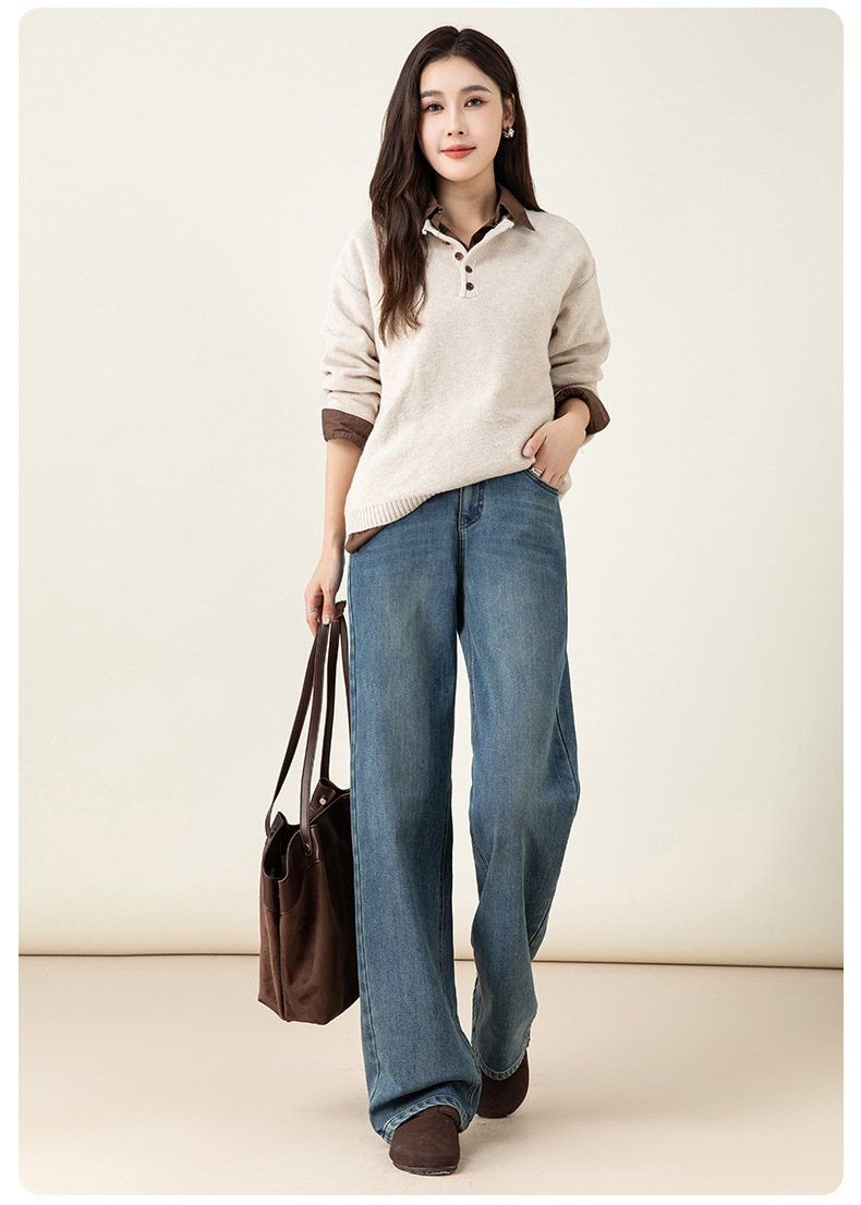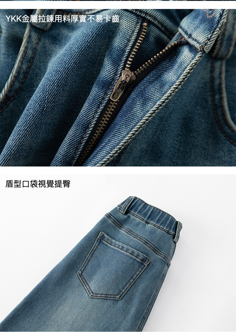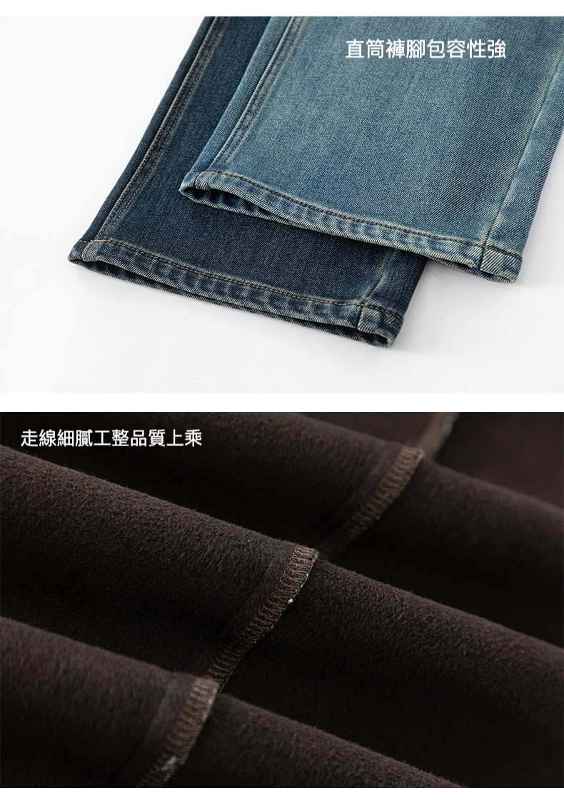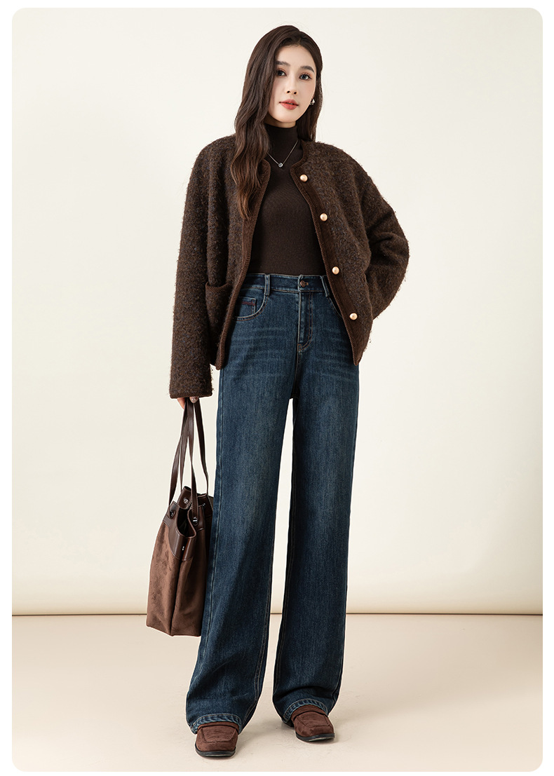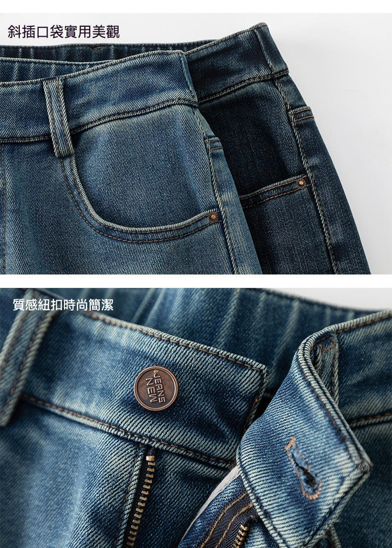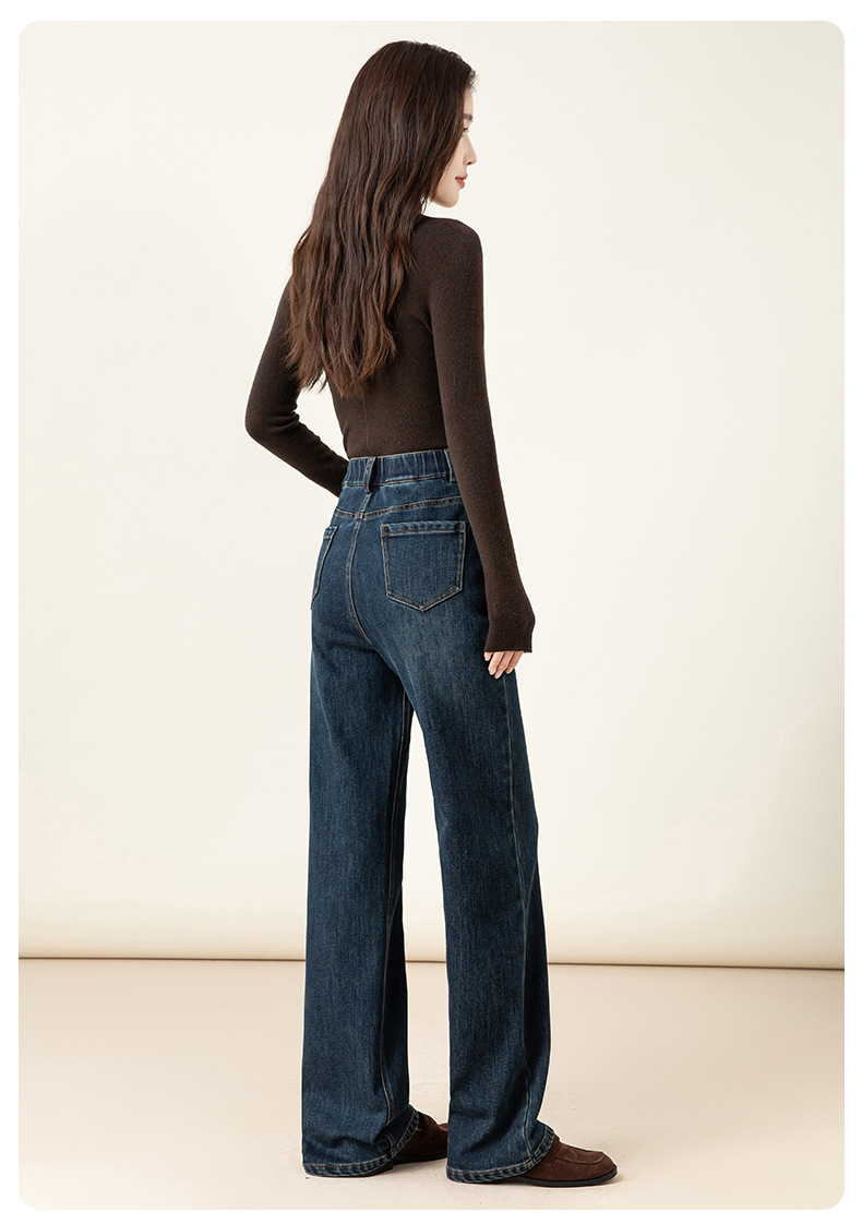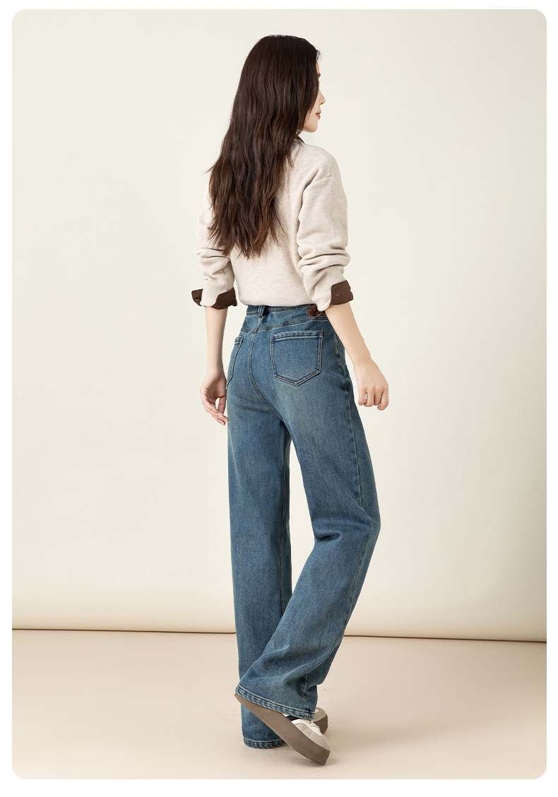 女士冬季加絨高腰直筒牛仔褲