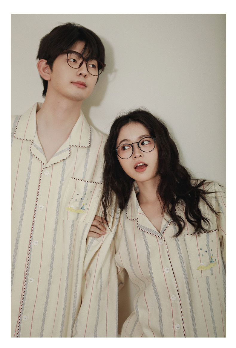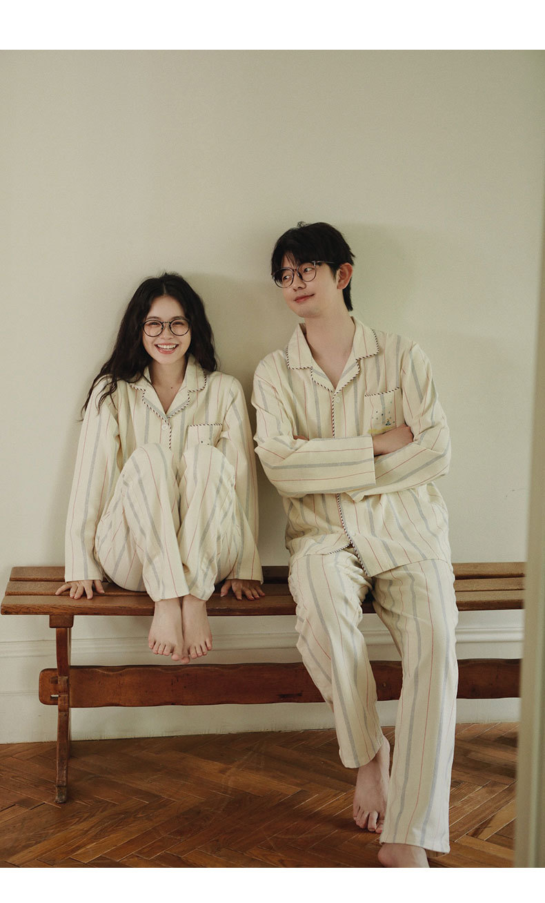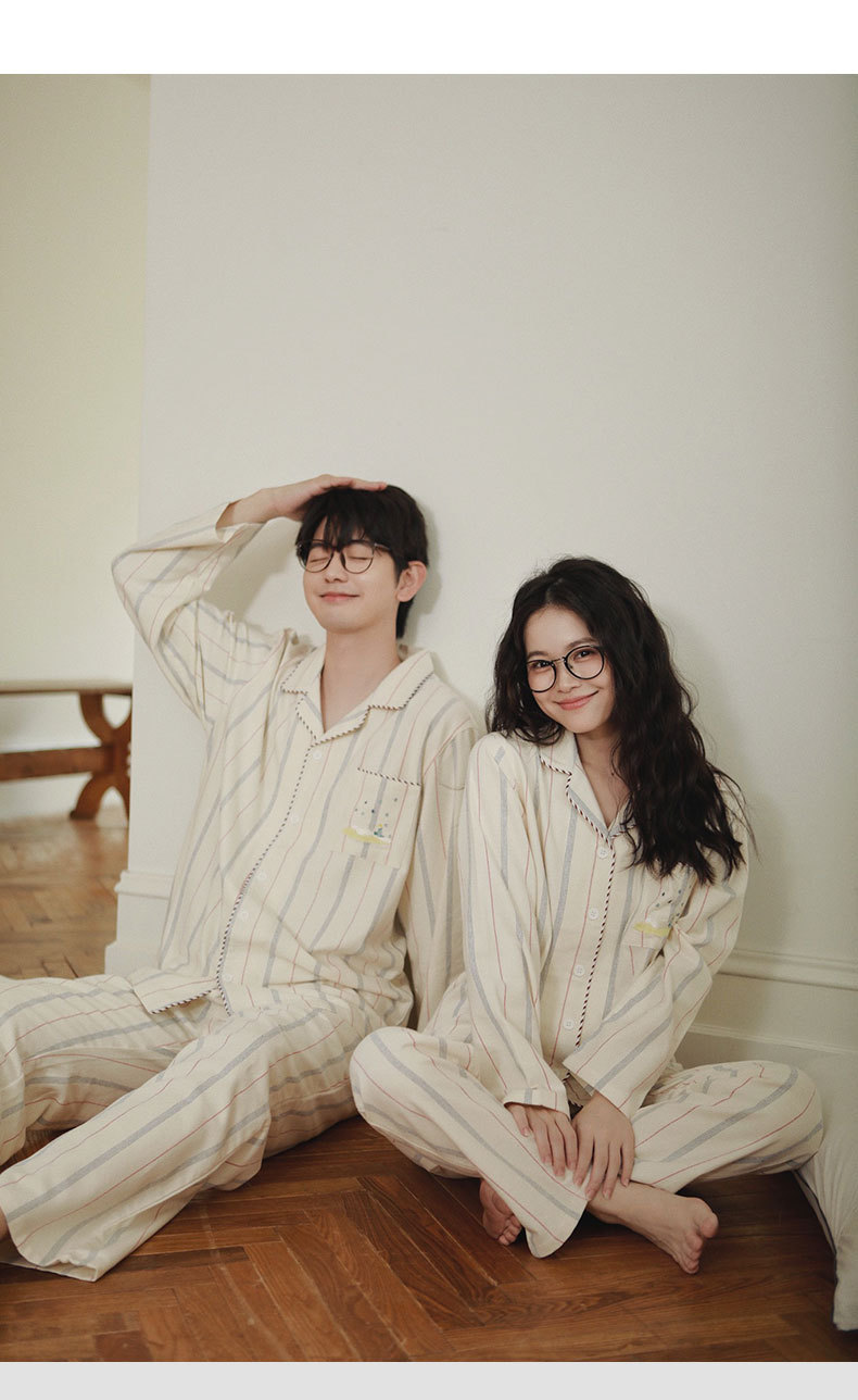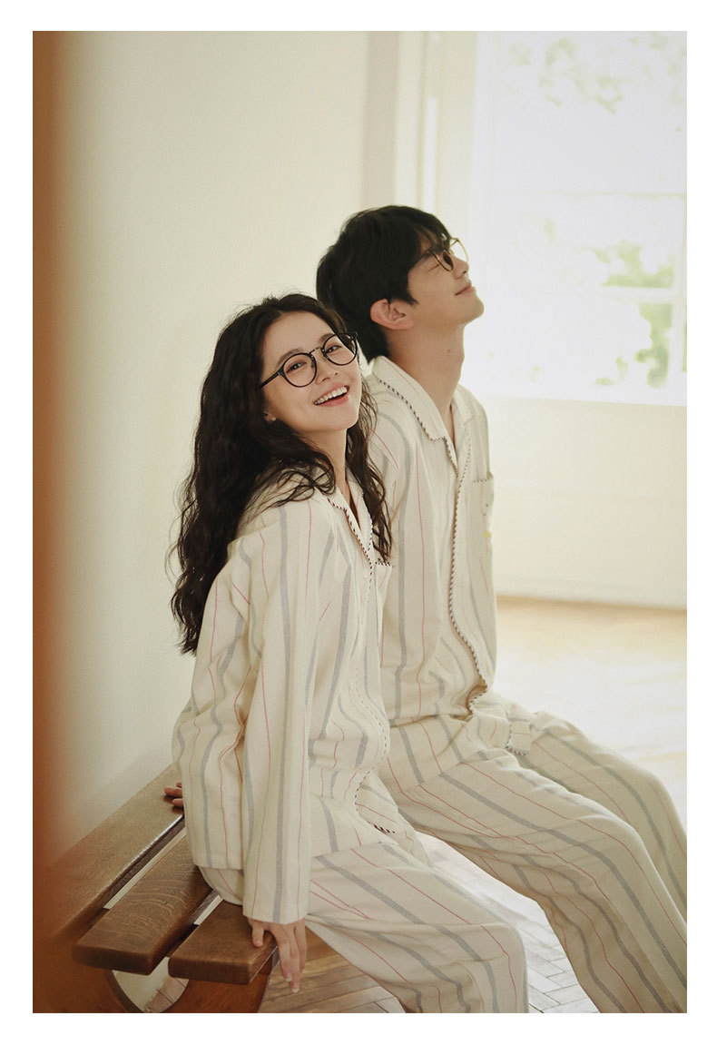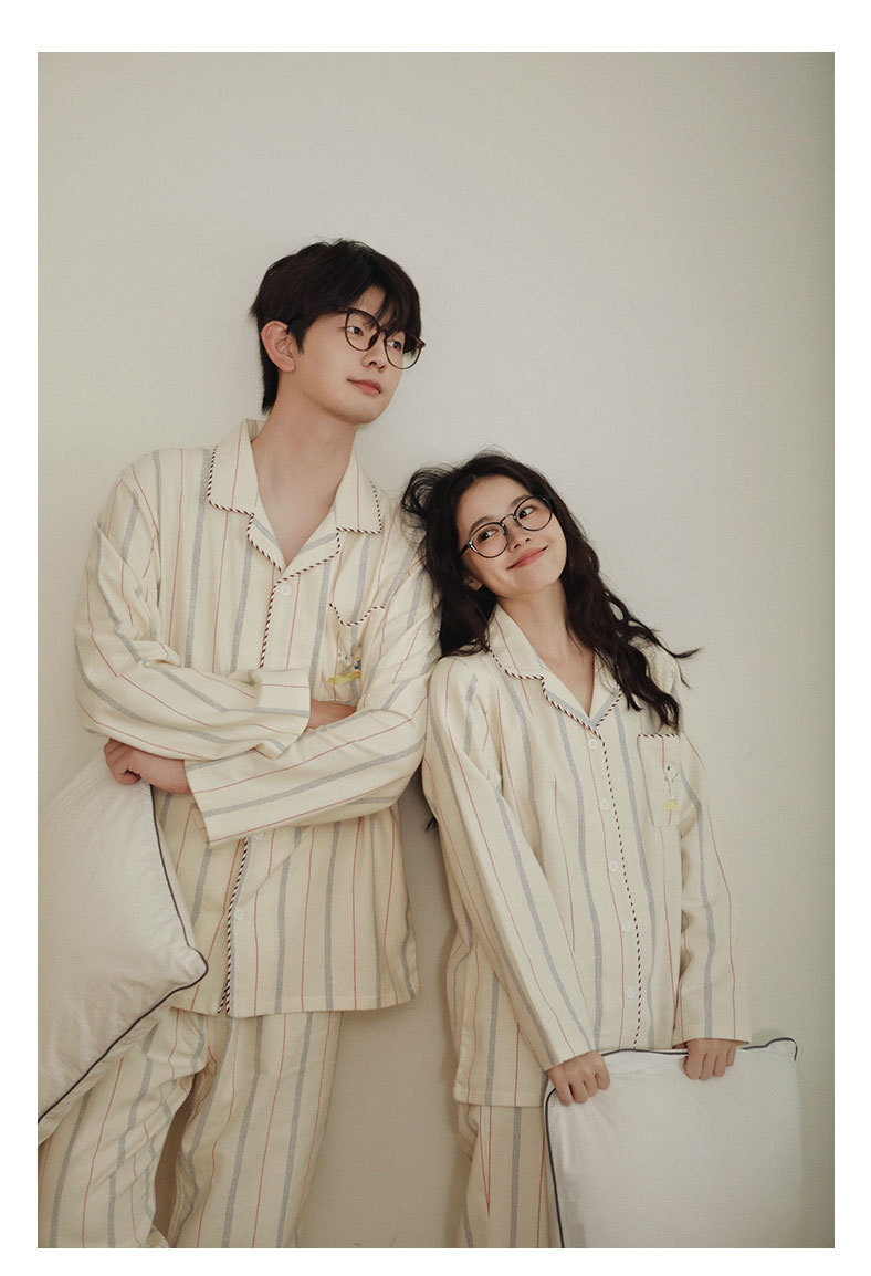 女士情侶款秋冬全棉磨毛光芒長袖居家服