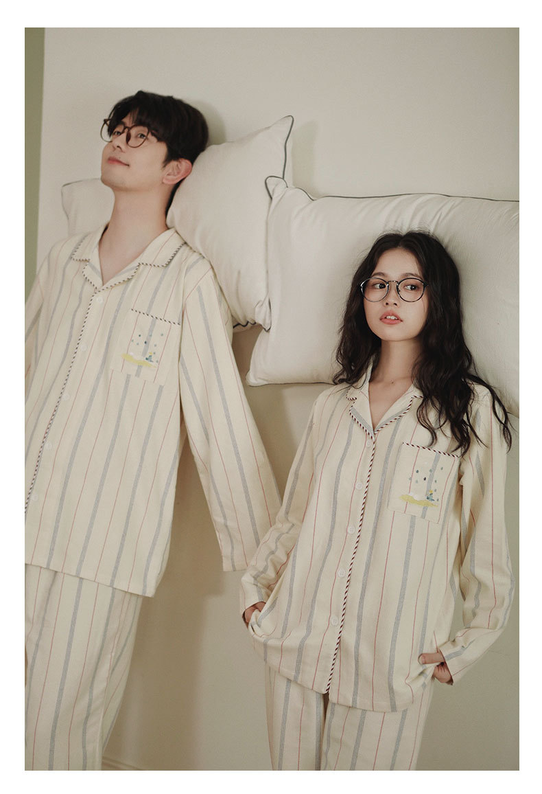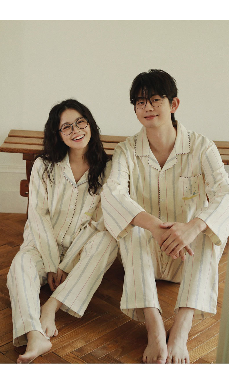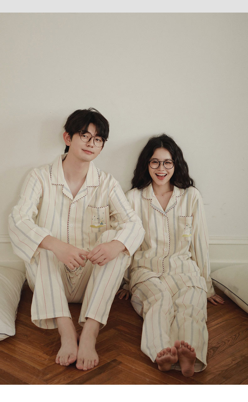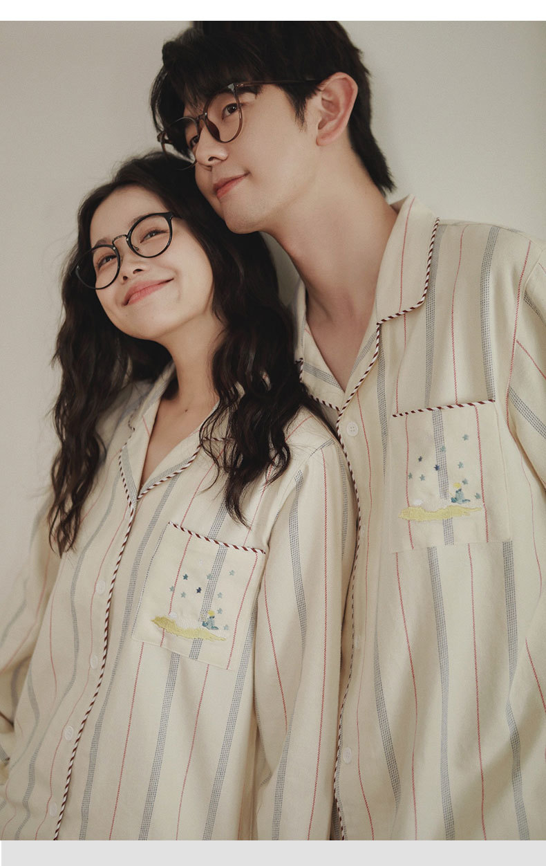女士情侶款秋冬全棉磨毛光芒長袖居家服