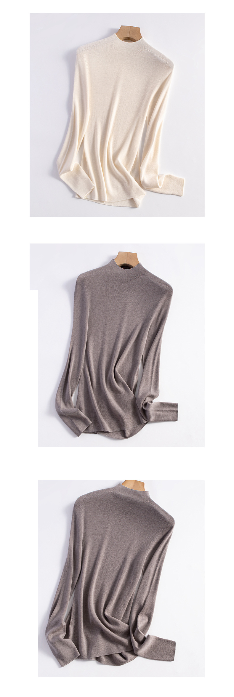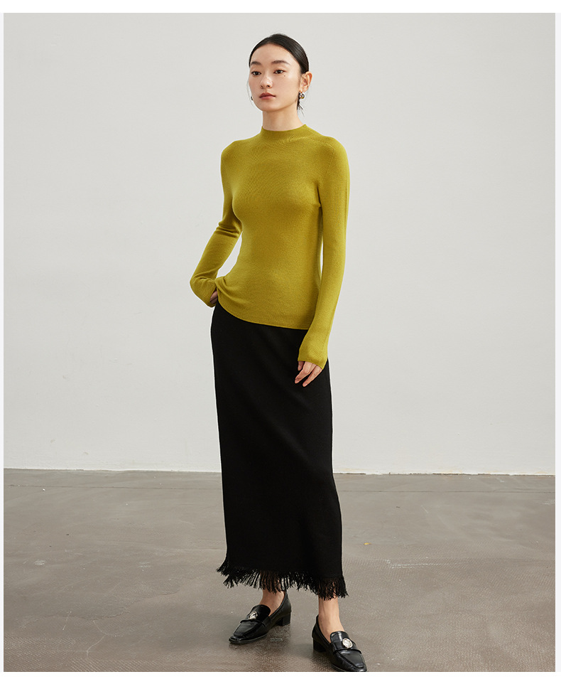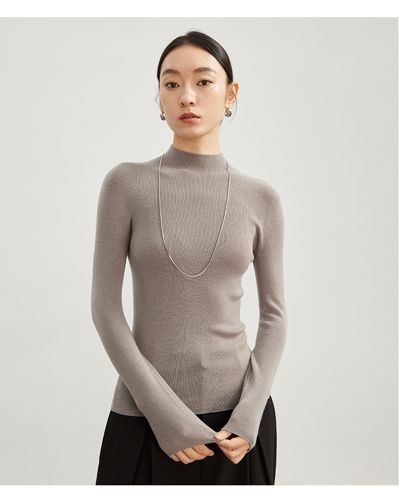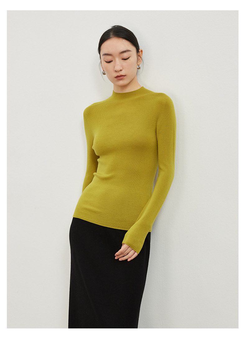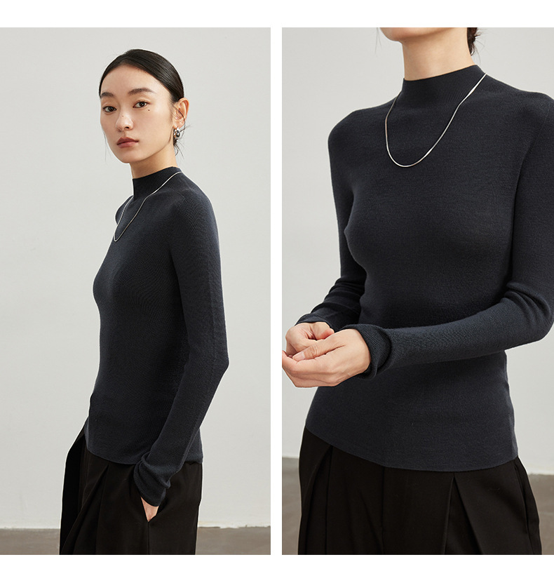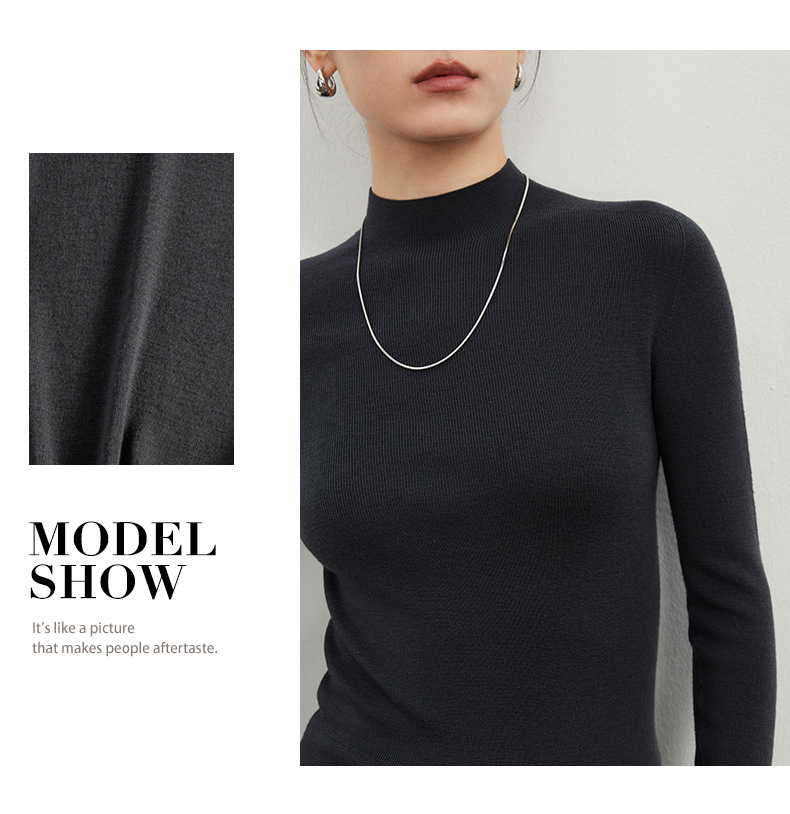 女士早秋無縫半高領100精仿羊毛打底衫