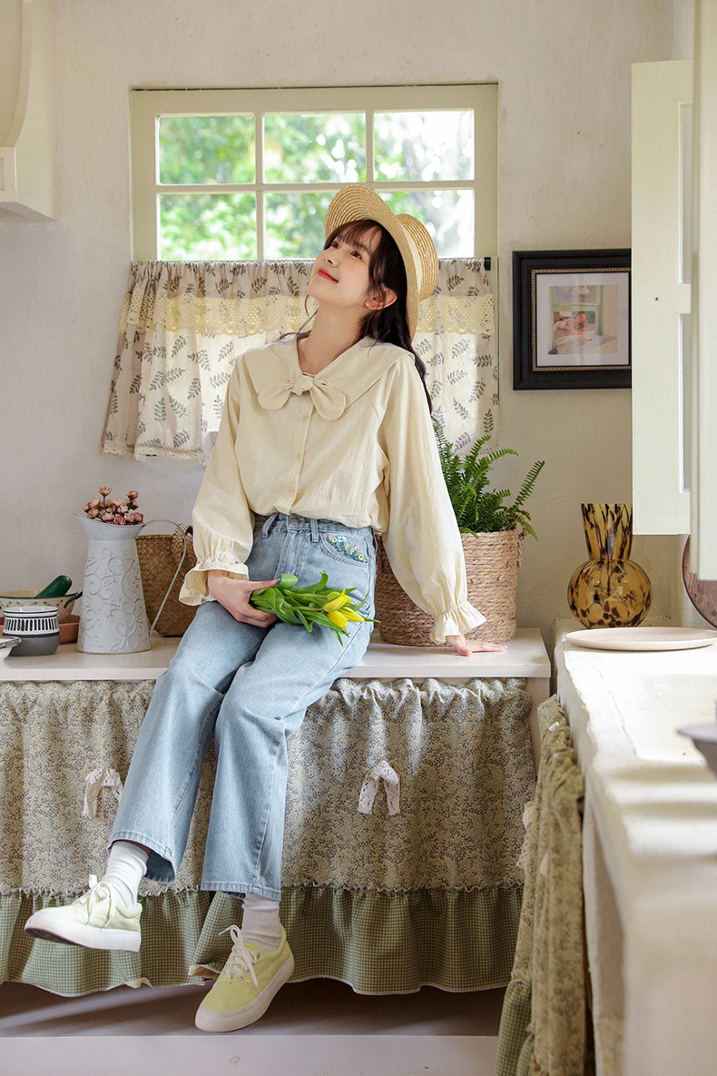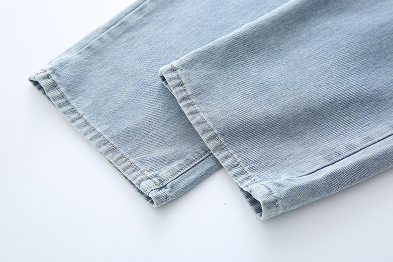 女士春夏小花刺繡口袋九分直筒牛仔褲