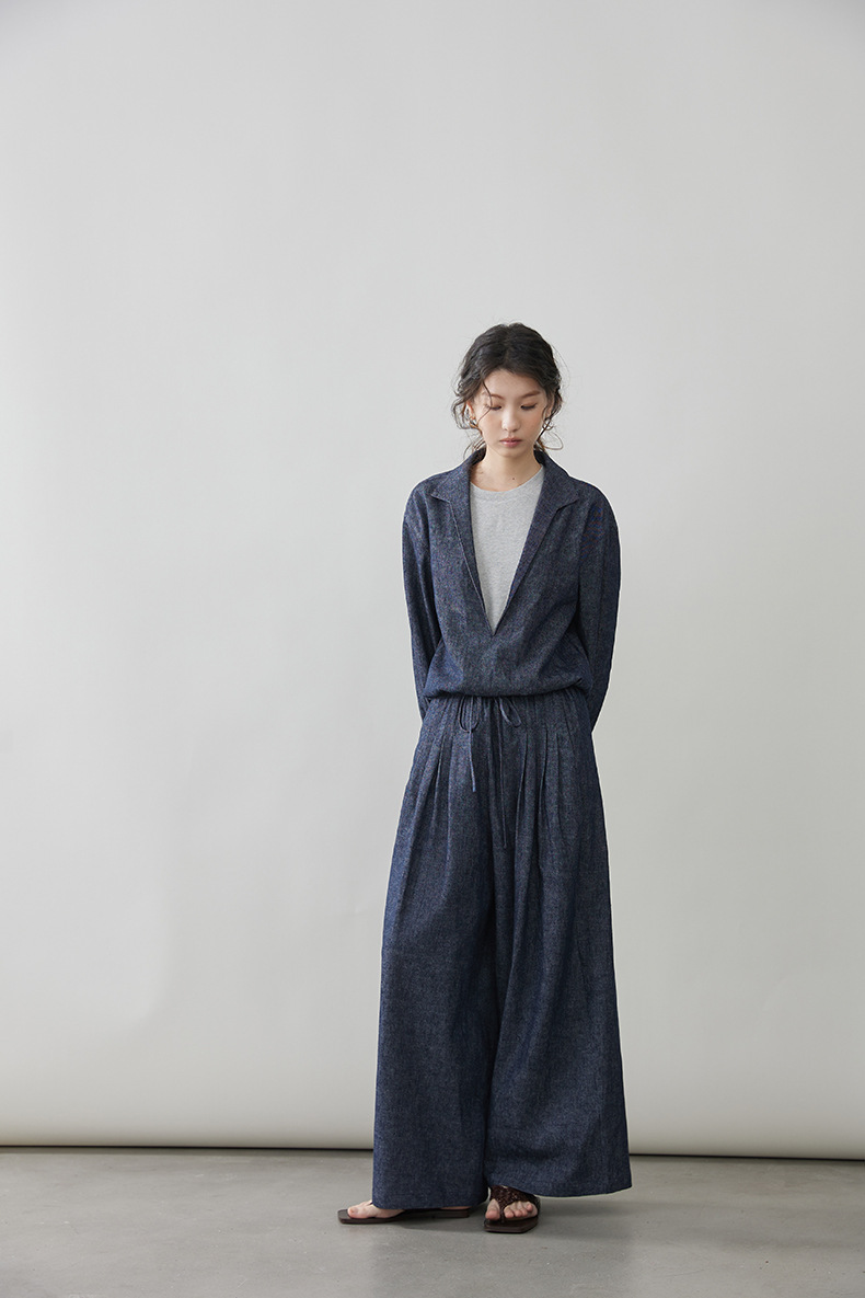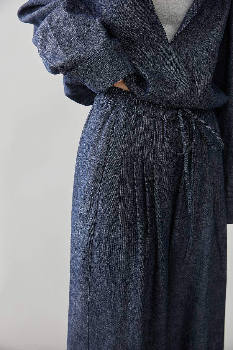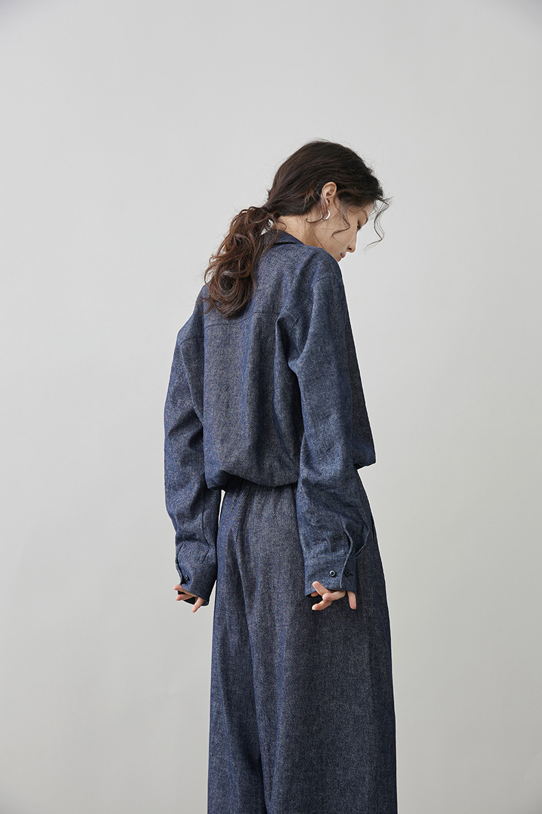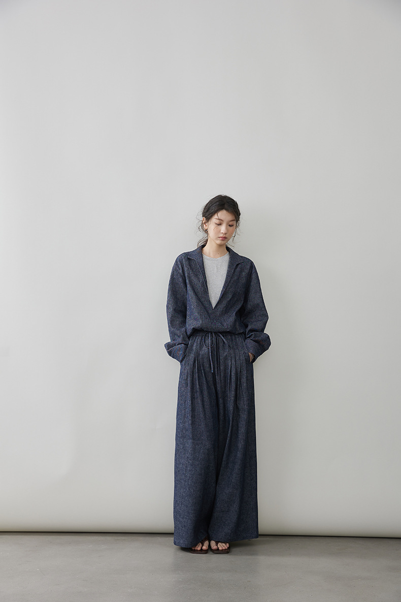 女士春秋亞麻棉牛仔假兩件套裝