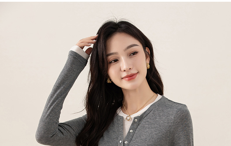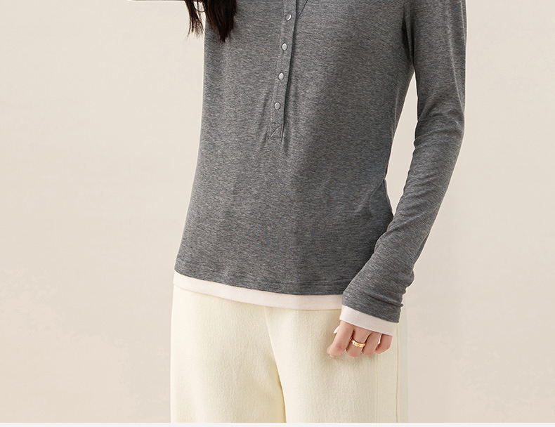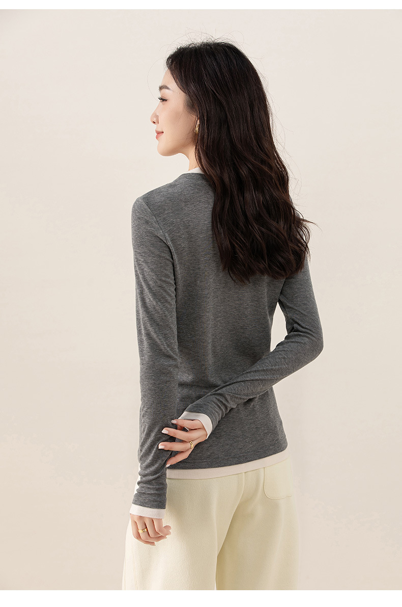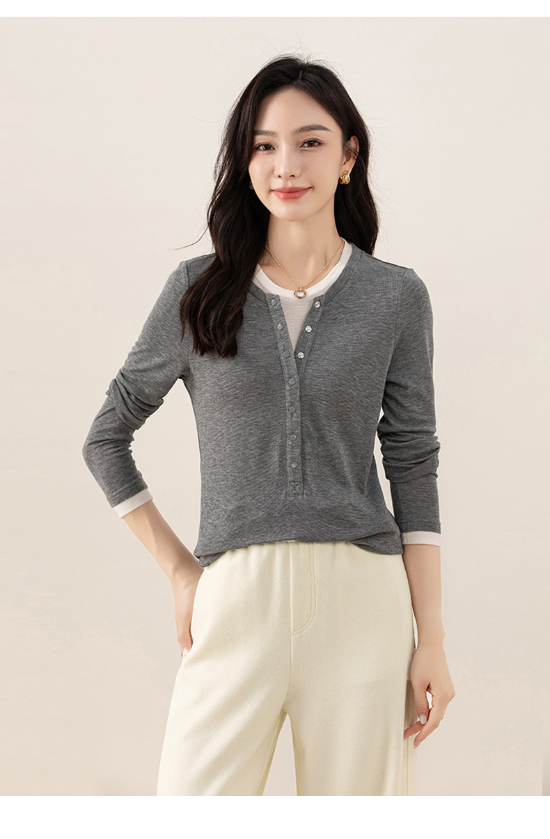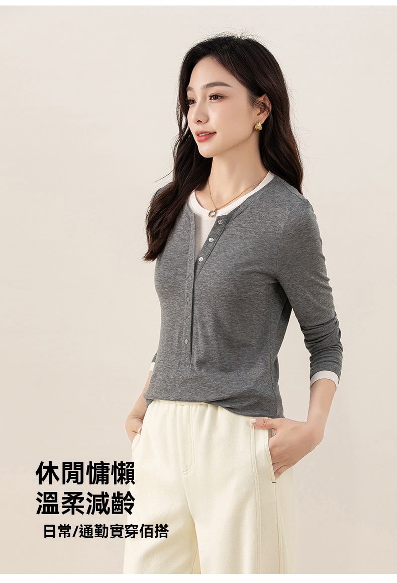 女士春秋假兩件天絲羊毛長袖T恤