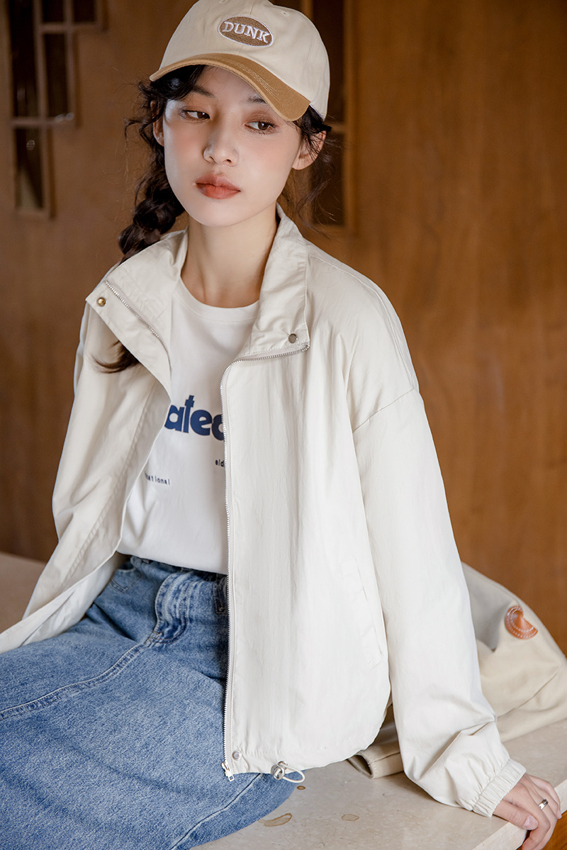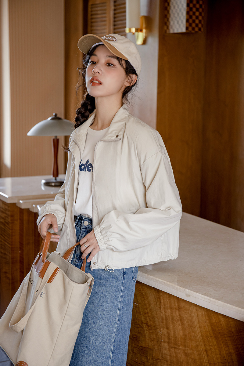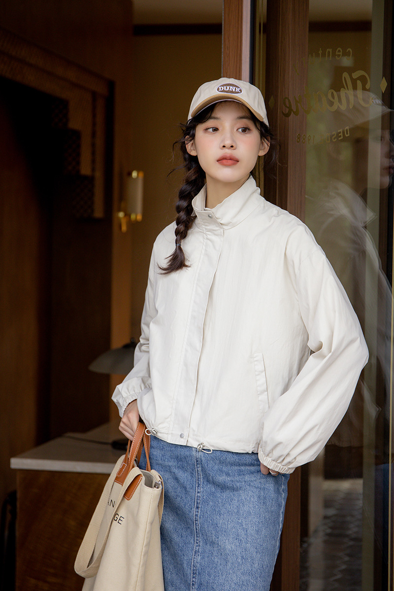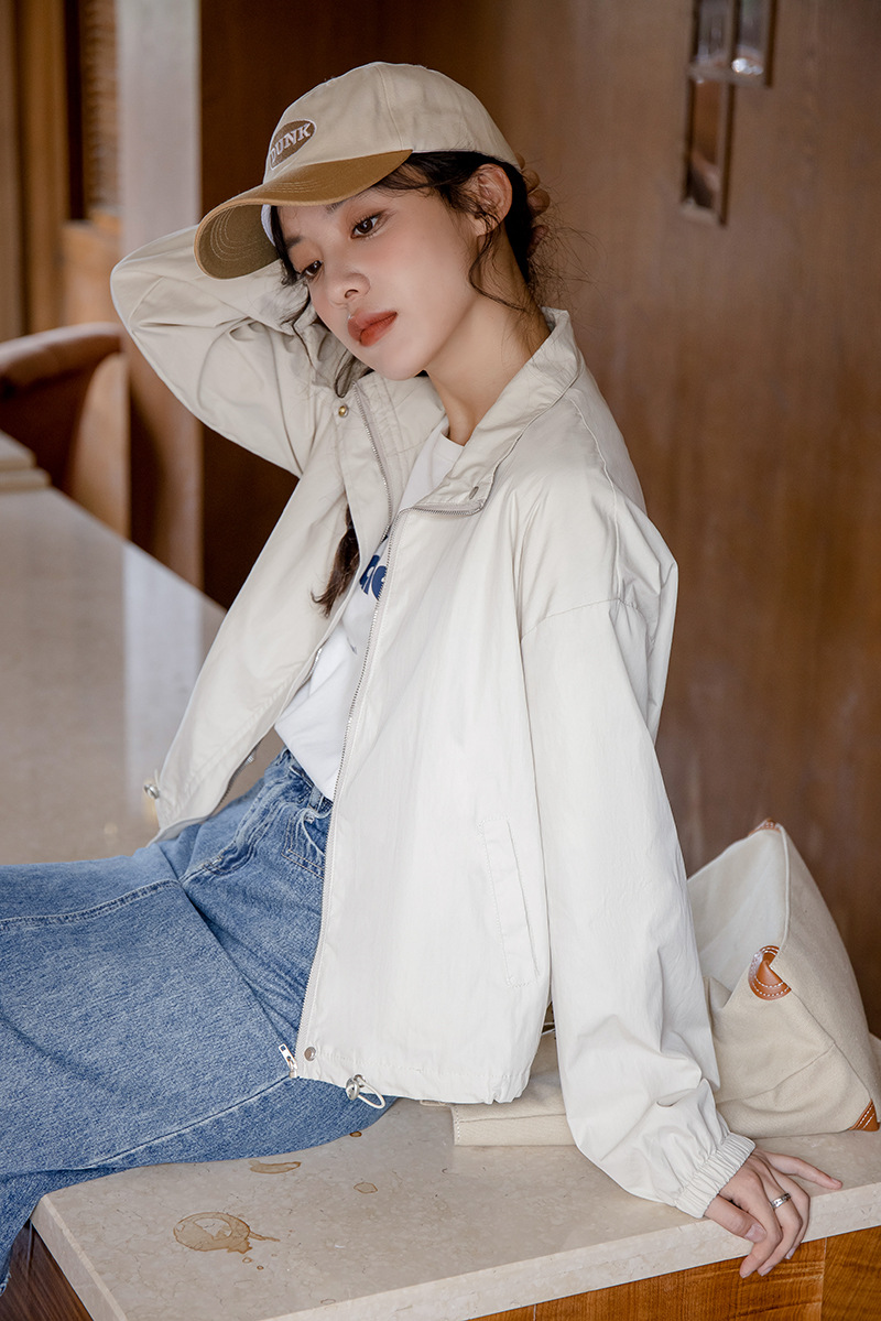 女士春秋工裝休閒小個子短款立領風衣外套