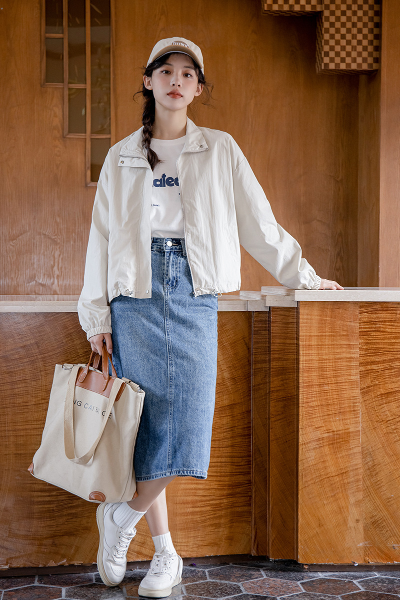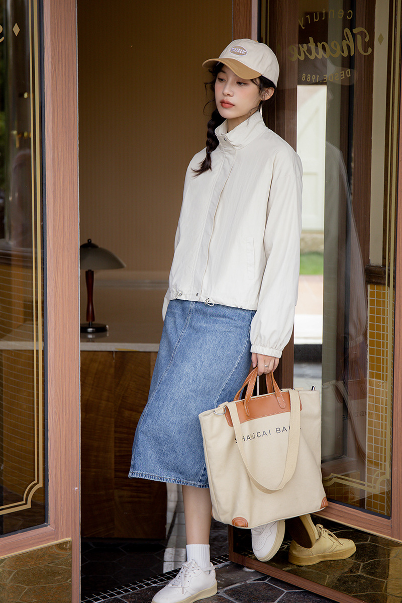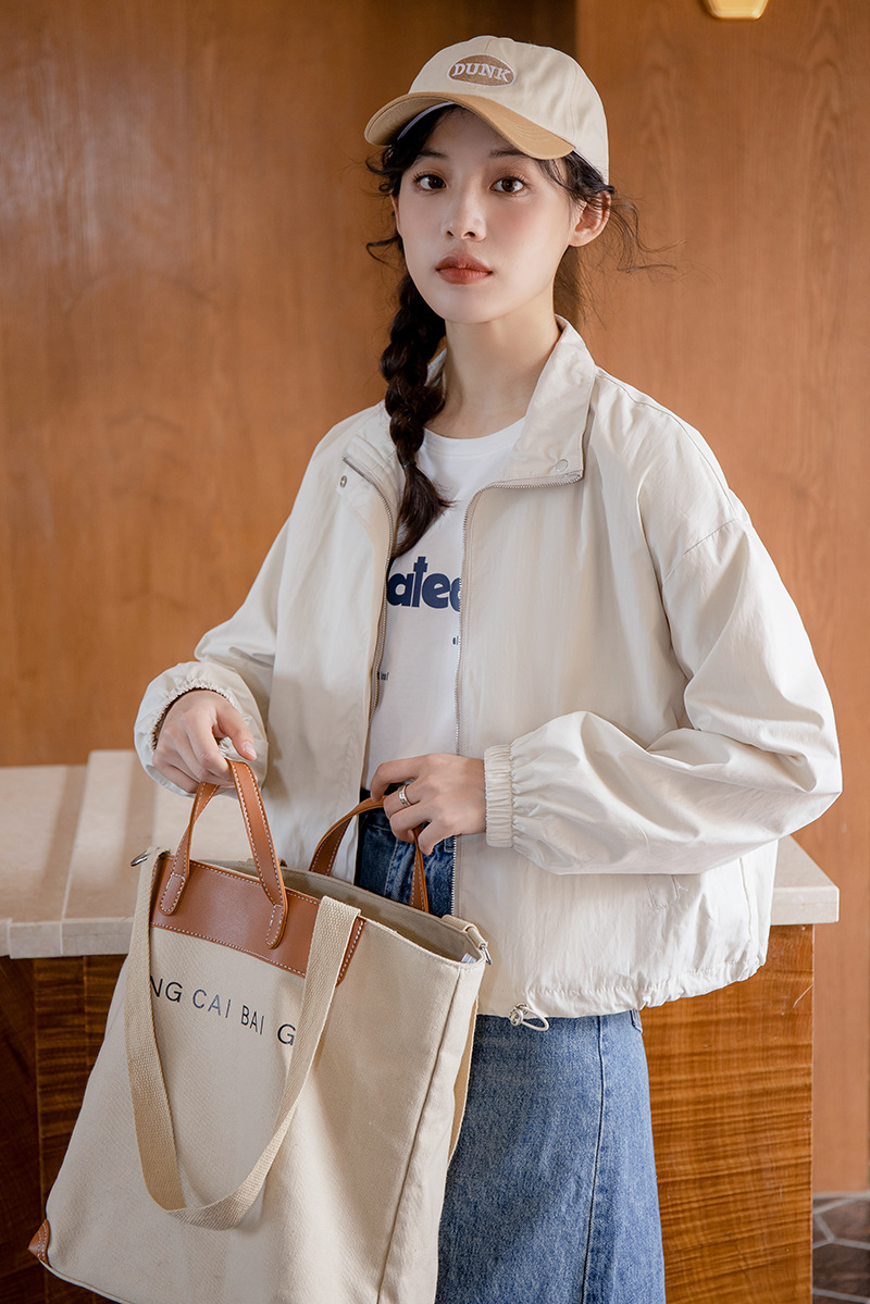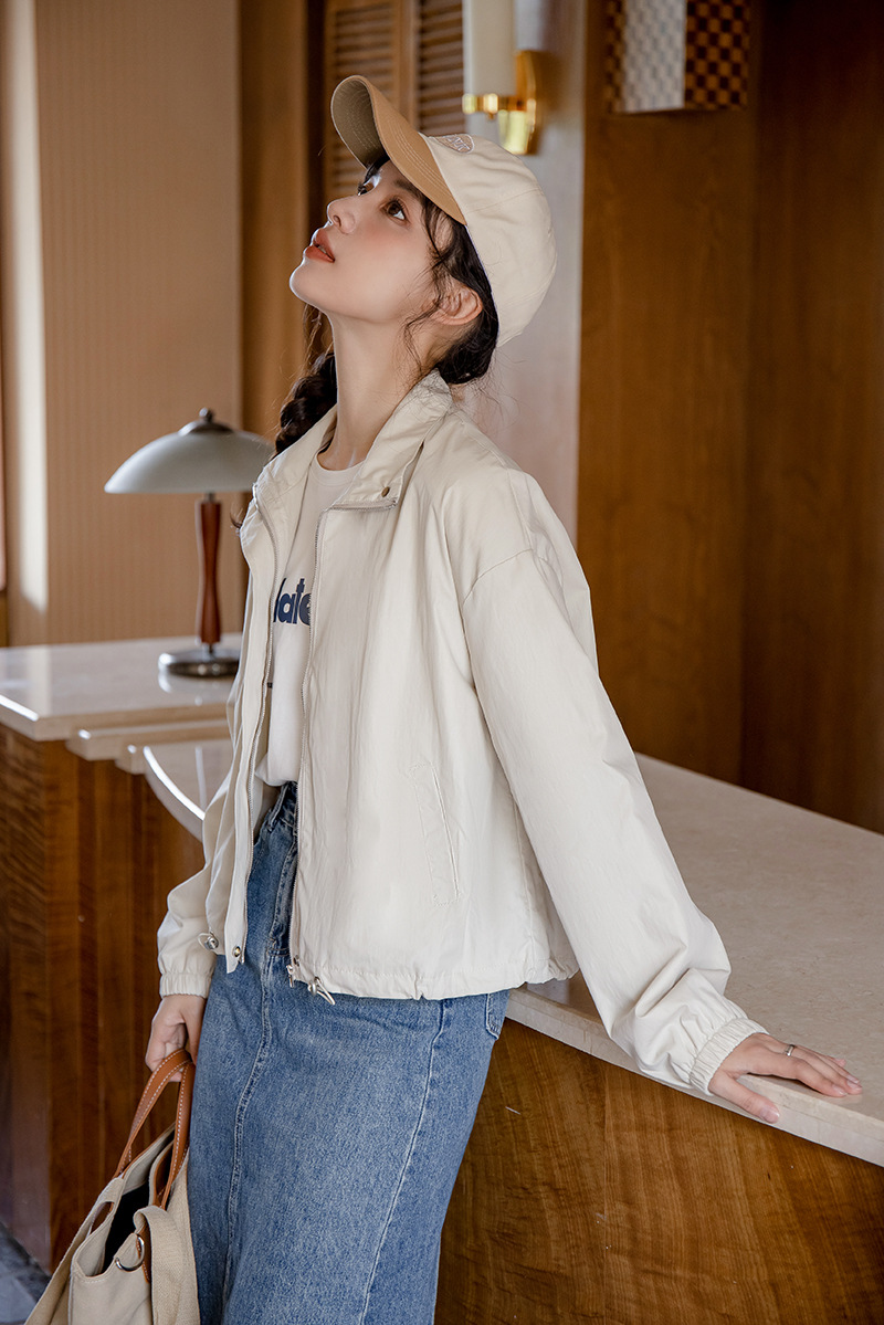 女士春秋工裝休閒小個子短款立領風衣外套