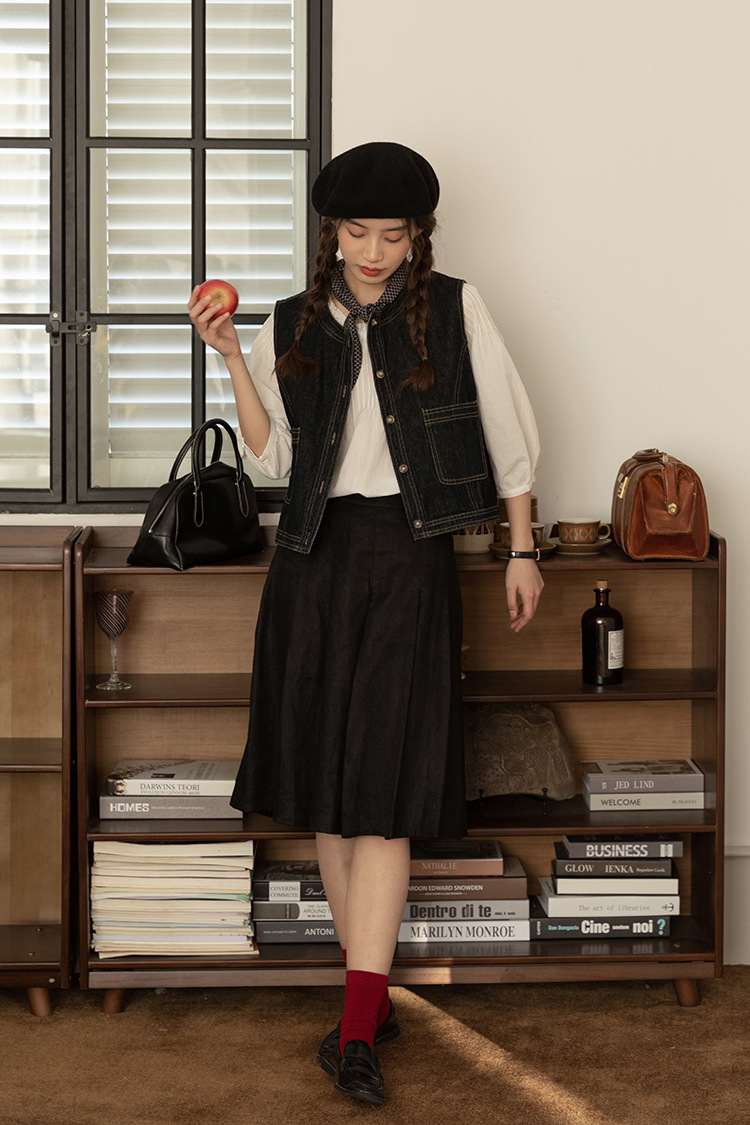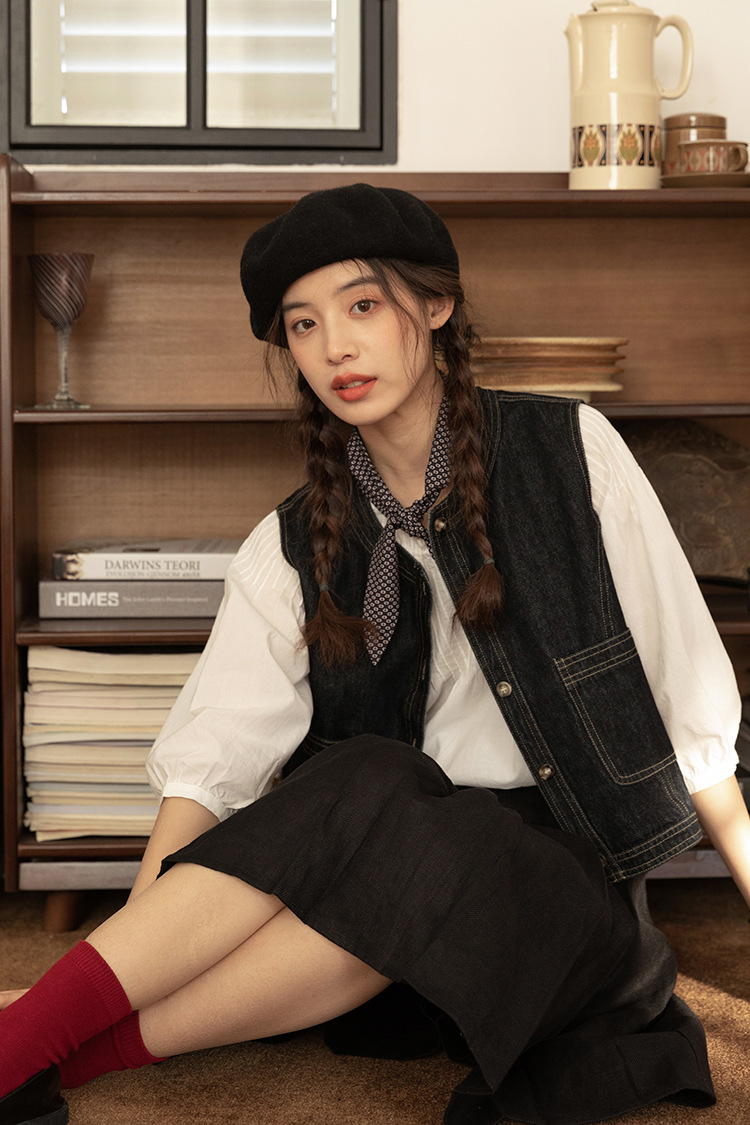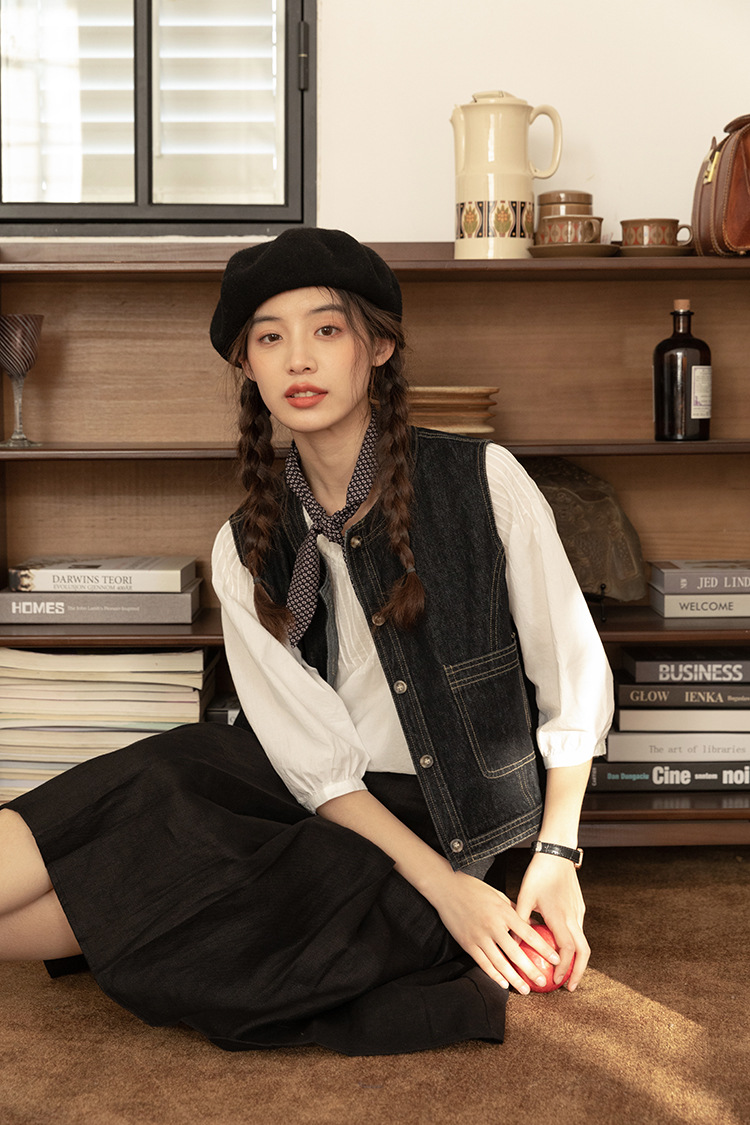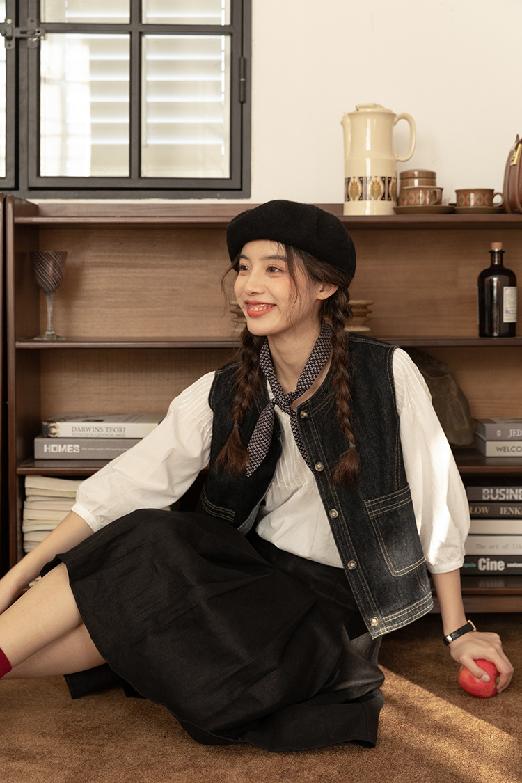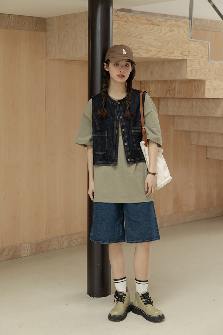 女士春秋短款明線設計牛仔馬甲