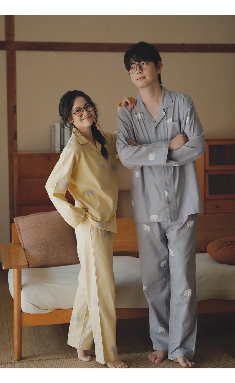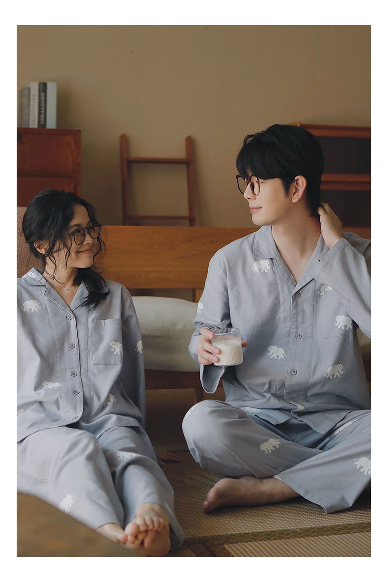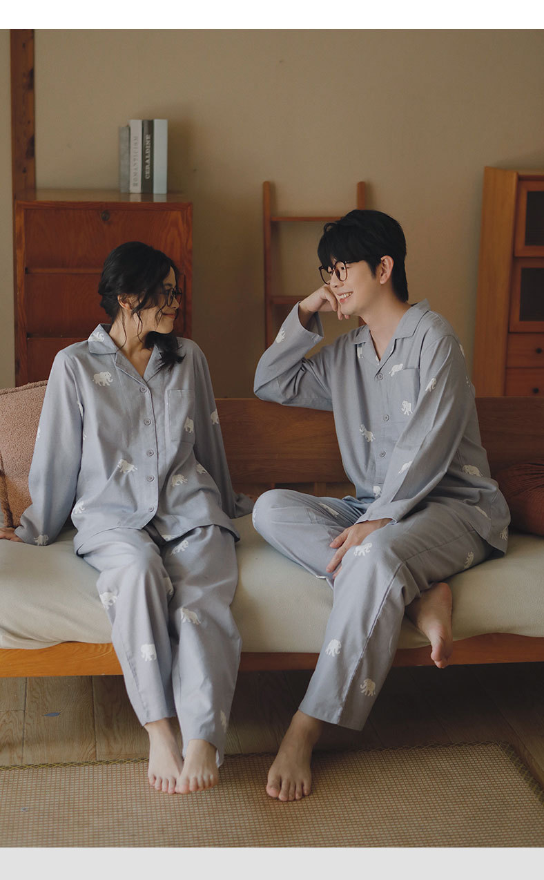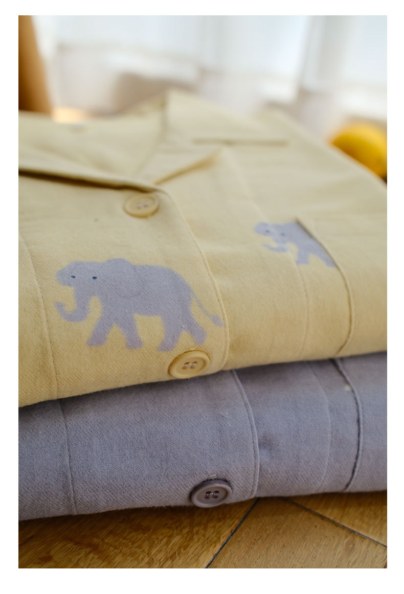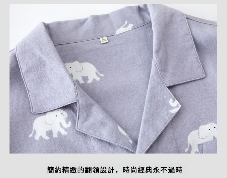 女士春秋純棉磨毛大象翻領長袖長褲居家服