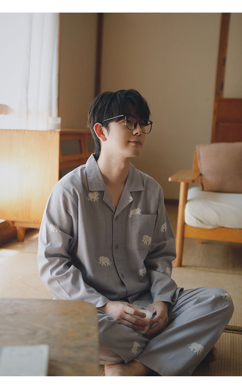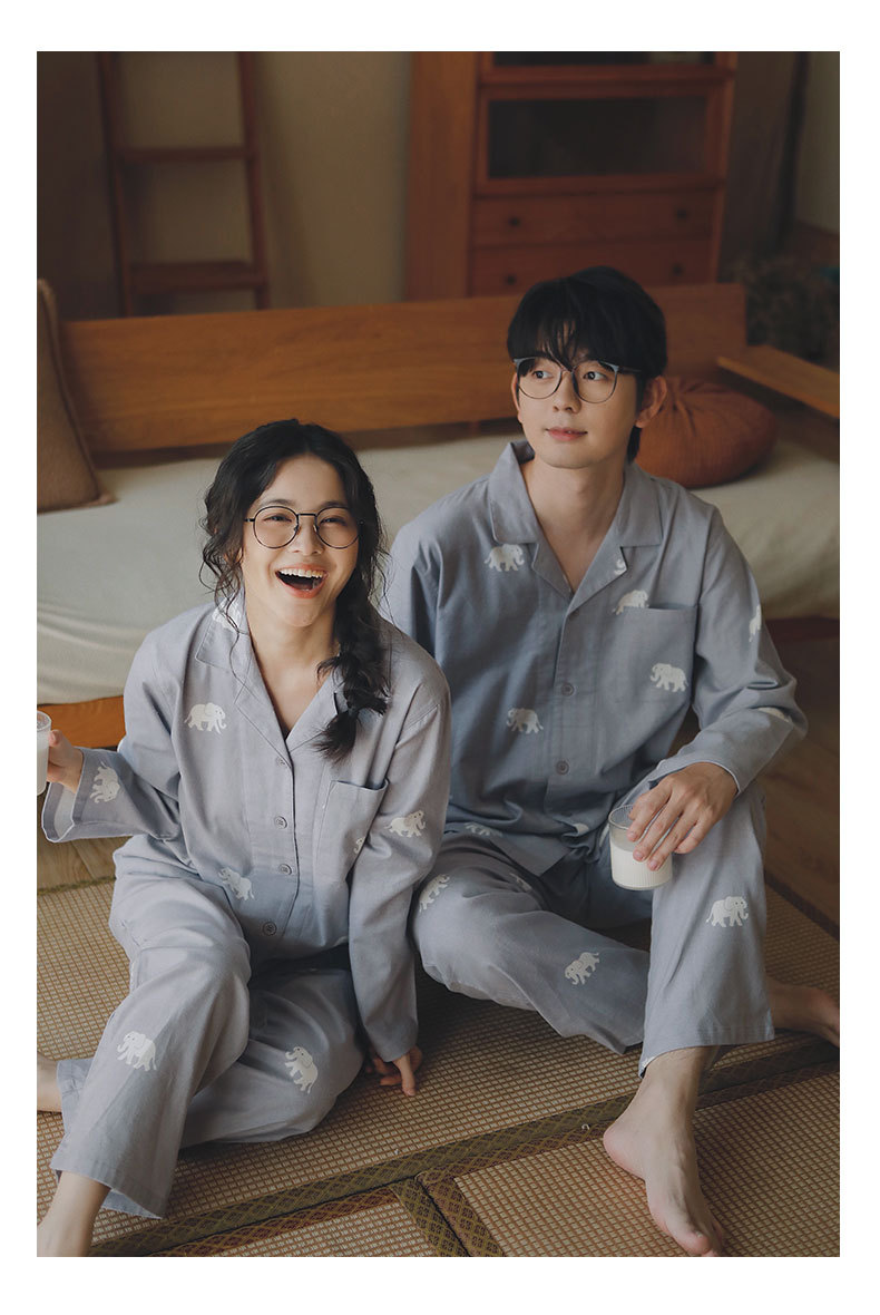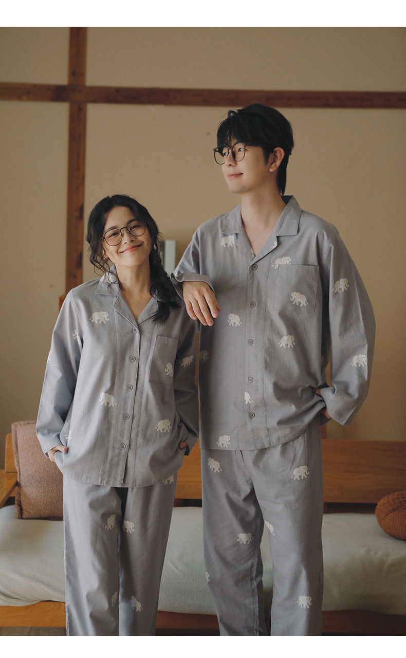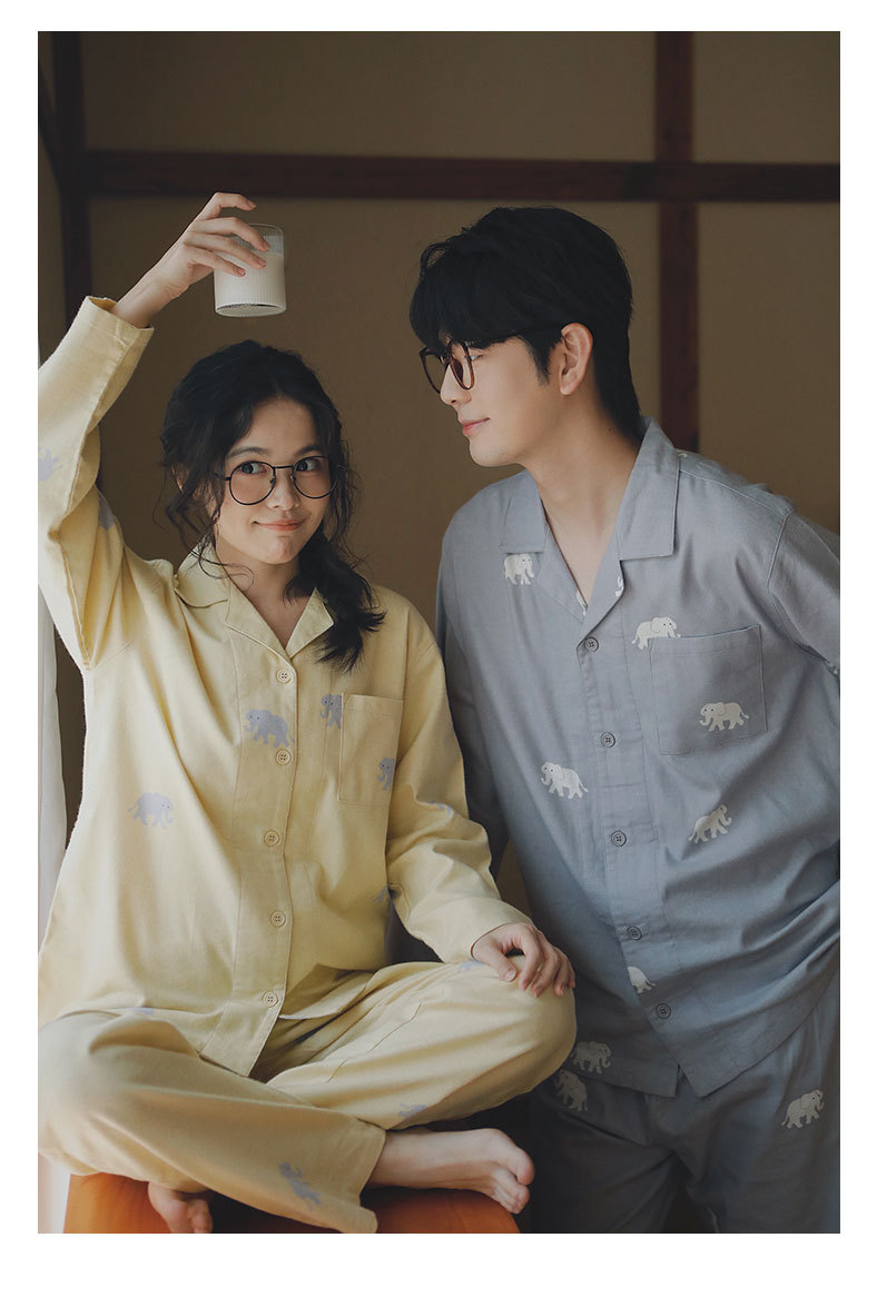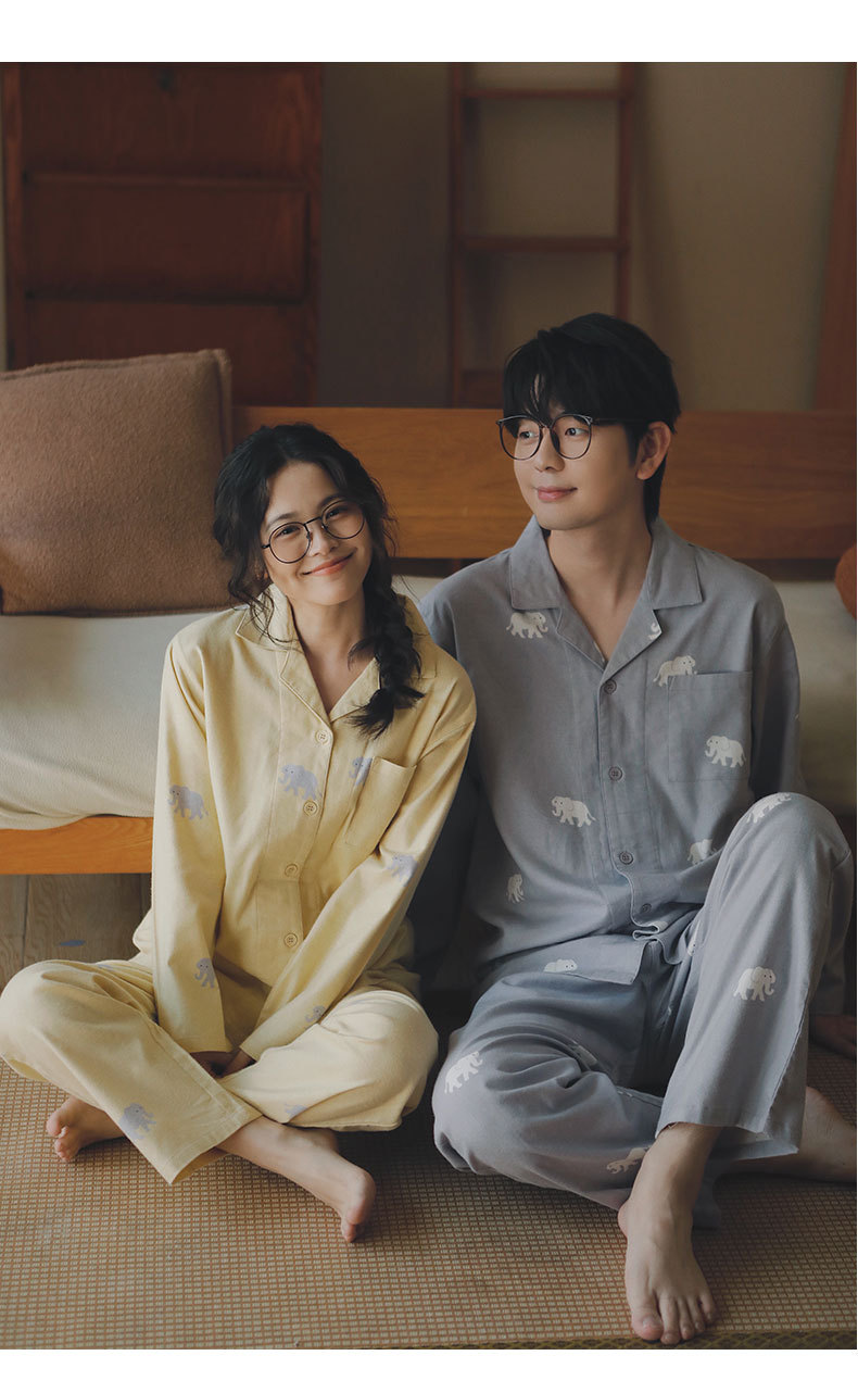 女士春秋純棉磨毛大象翻領長袖長褲居家服