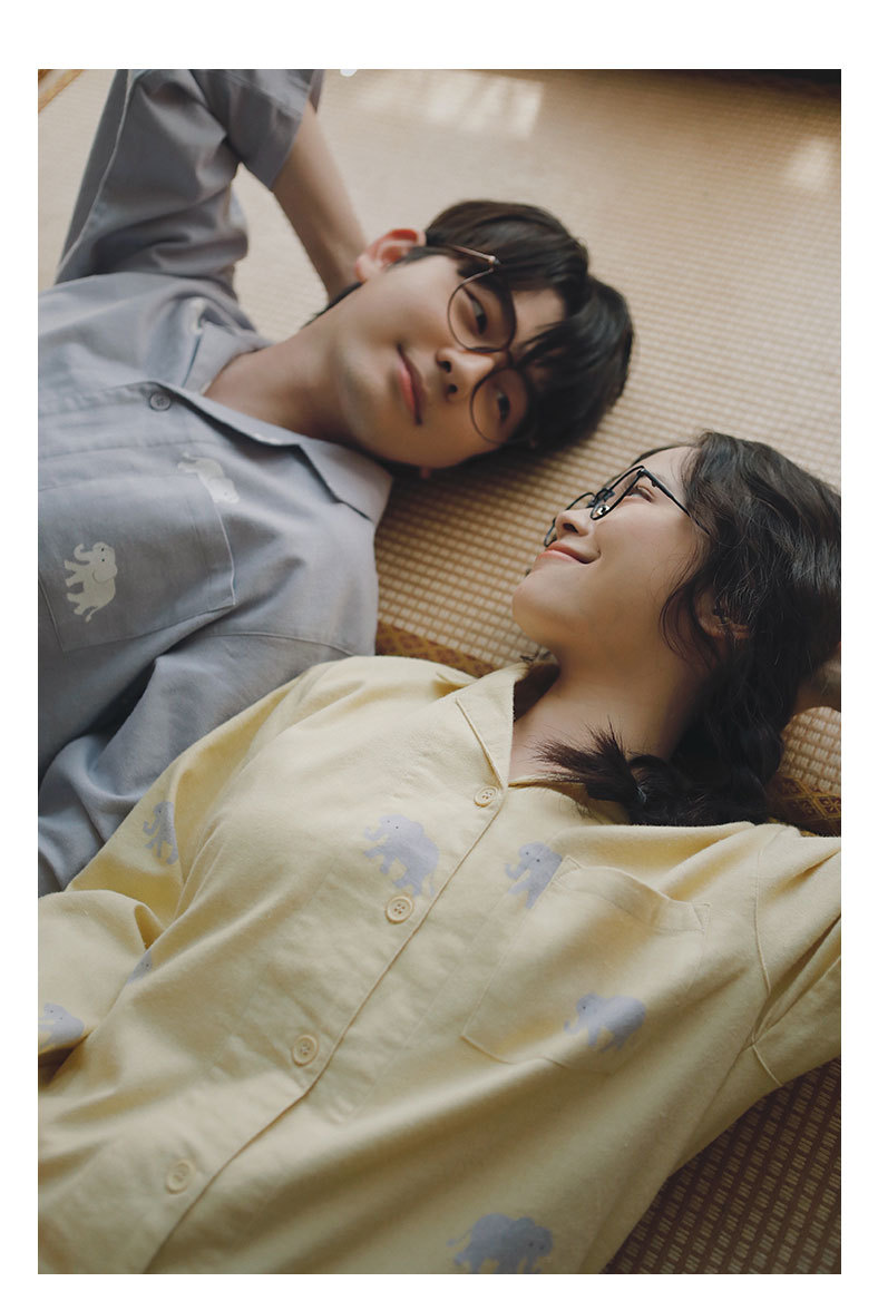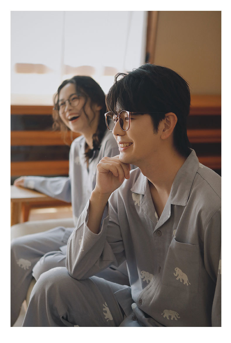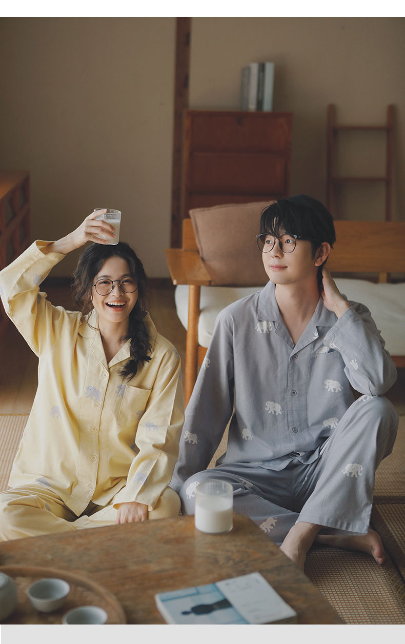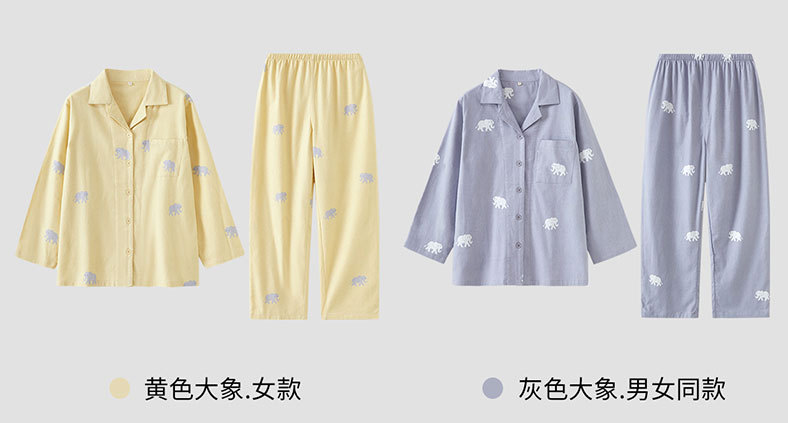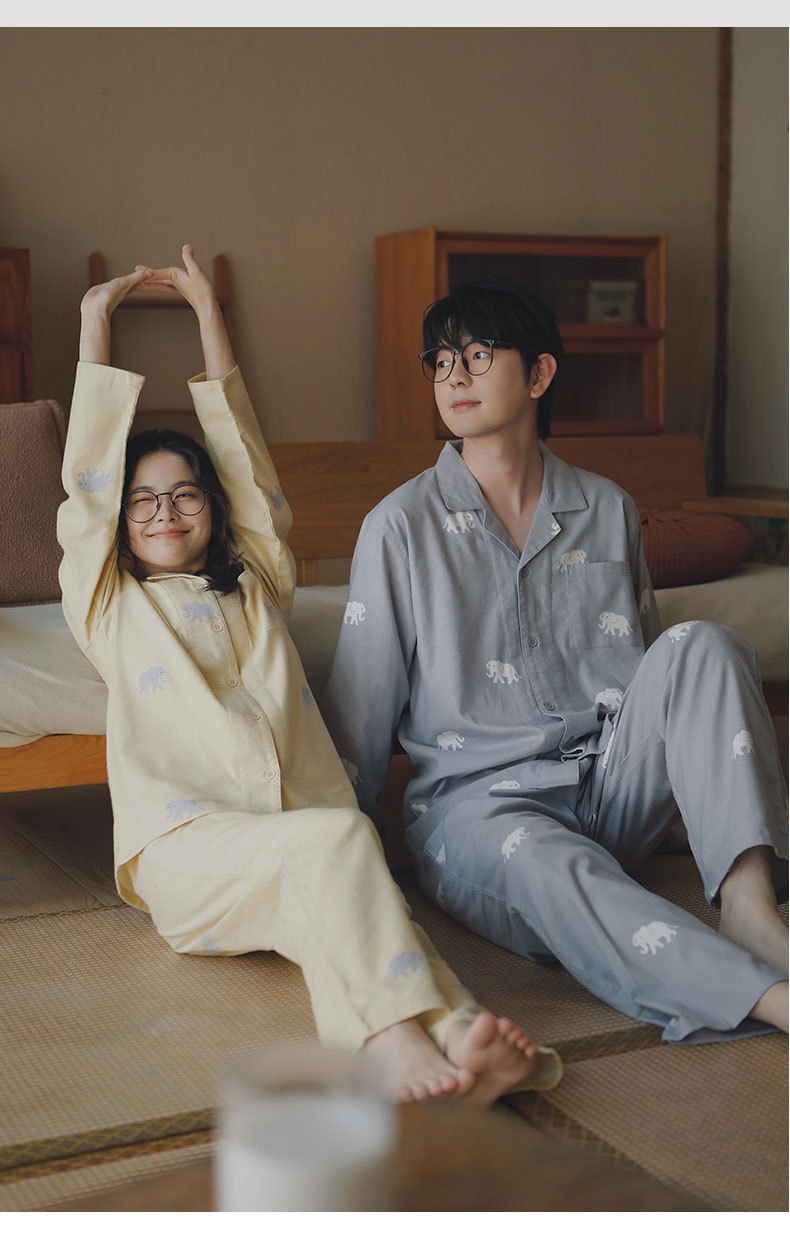 女士春秋純棉磨毛大象翻領長袖長褲居家服