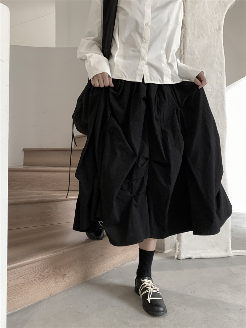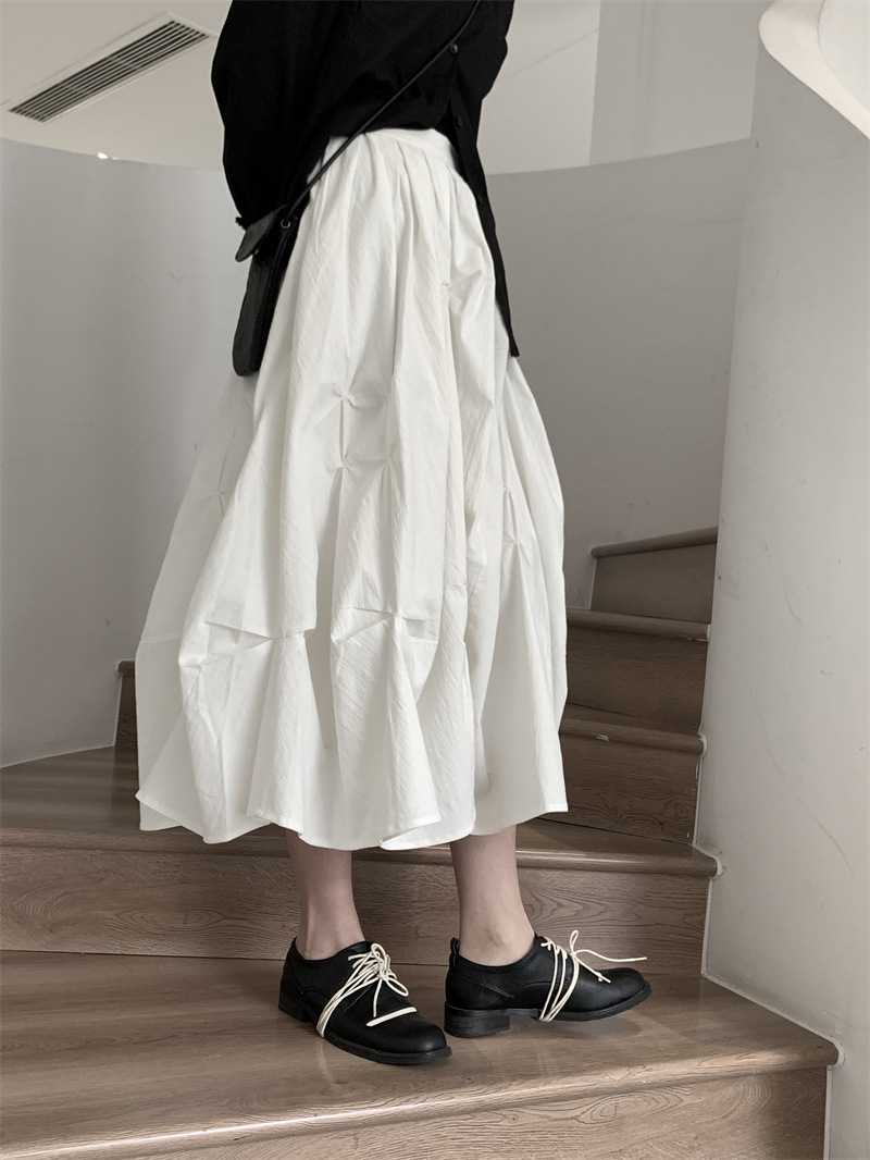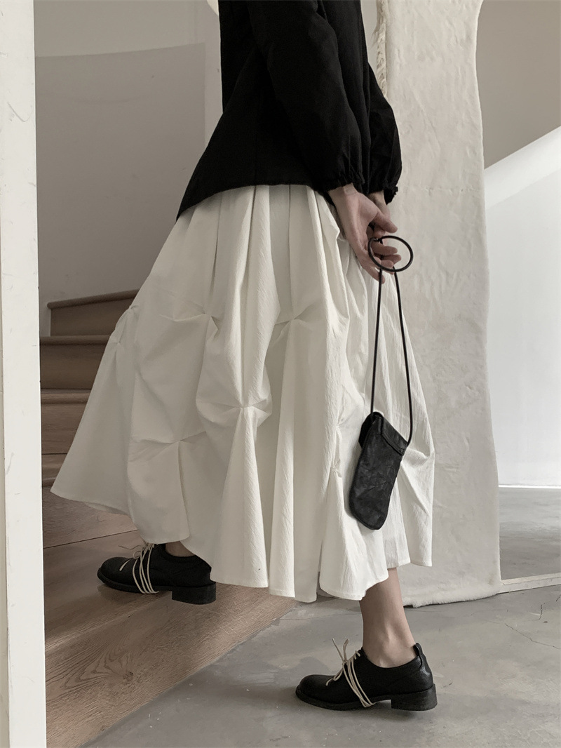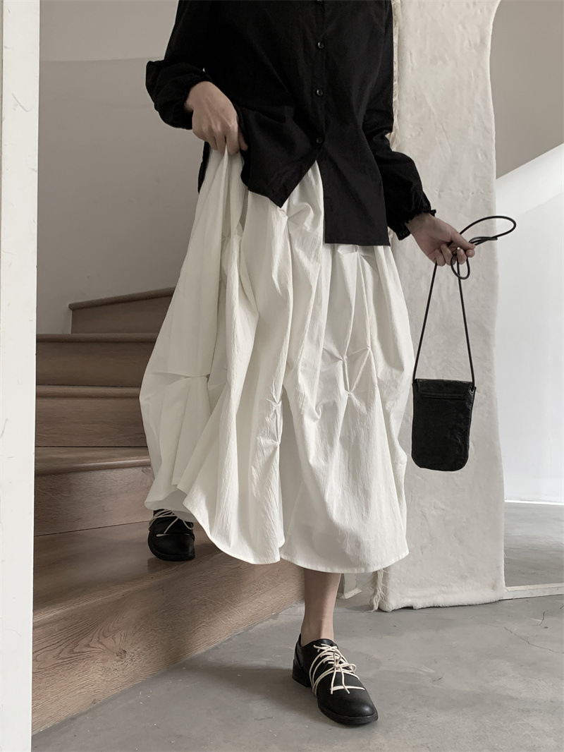 女士春秋肌理感褶皺蓬蓬半身裙