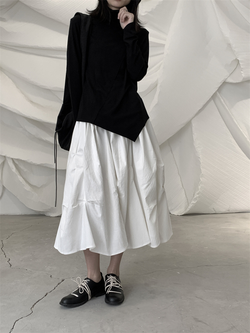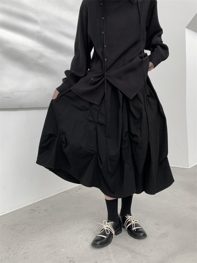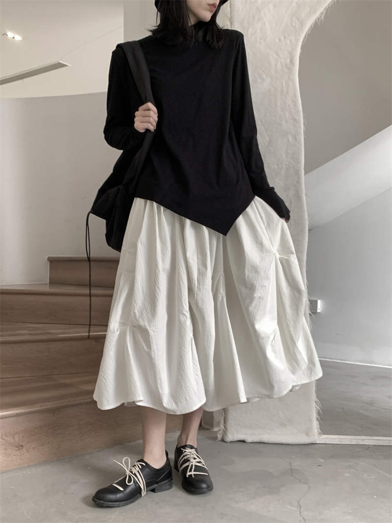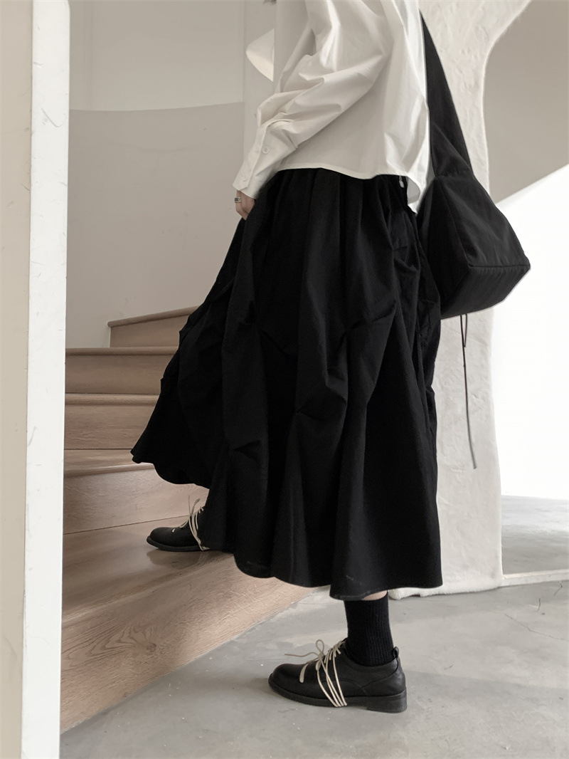 女士春秋肌理感褶皺蓬蓬半身裙
