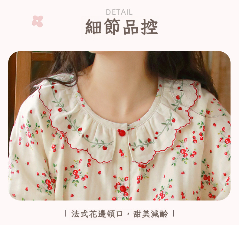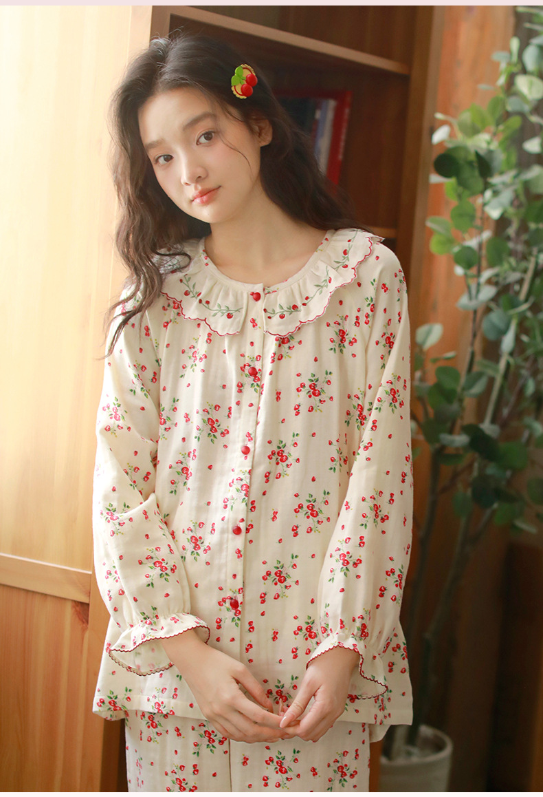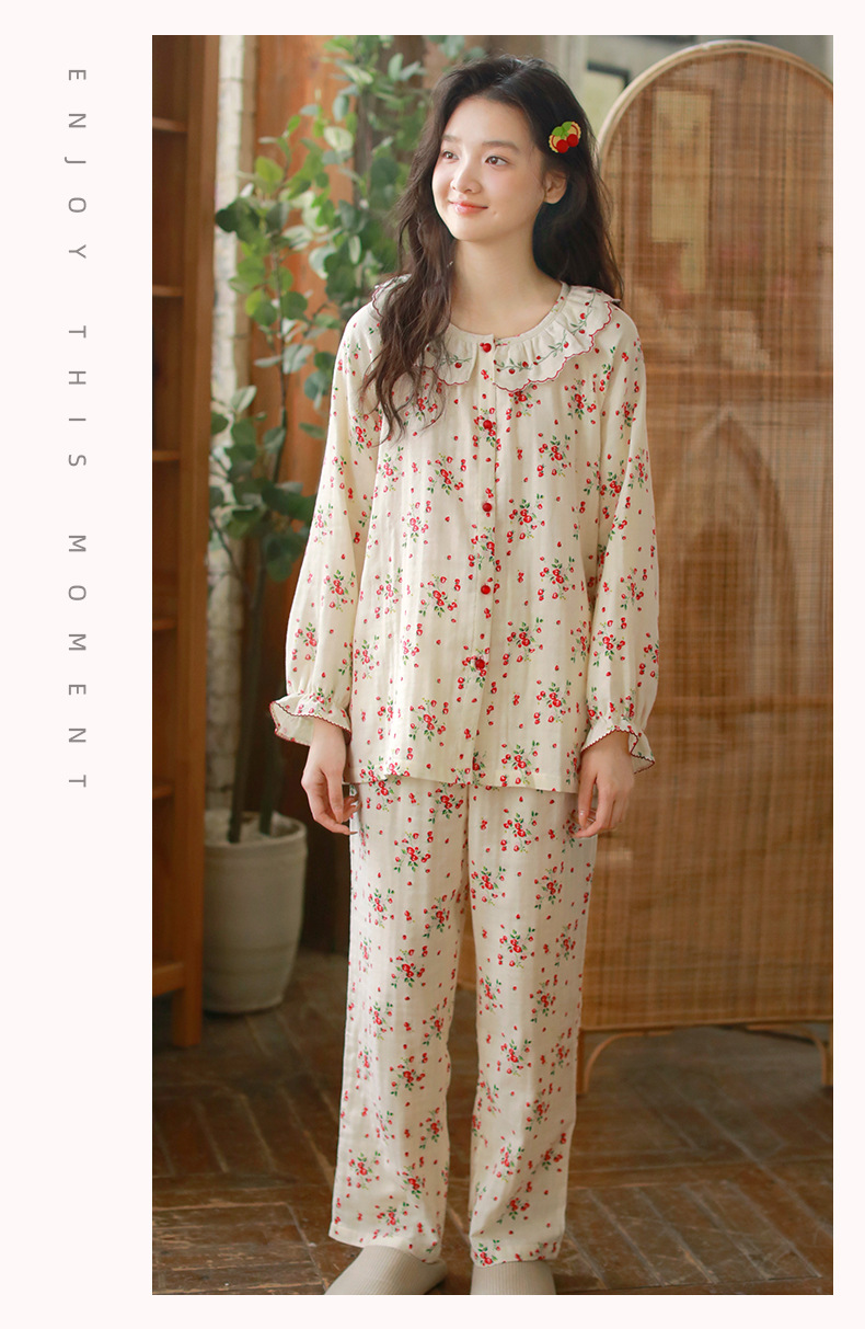 女士春秋薄款三層棉紗長袖長褲居家服