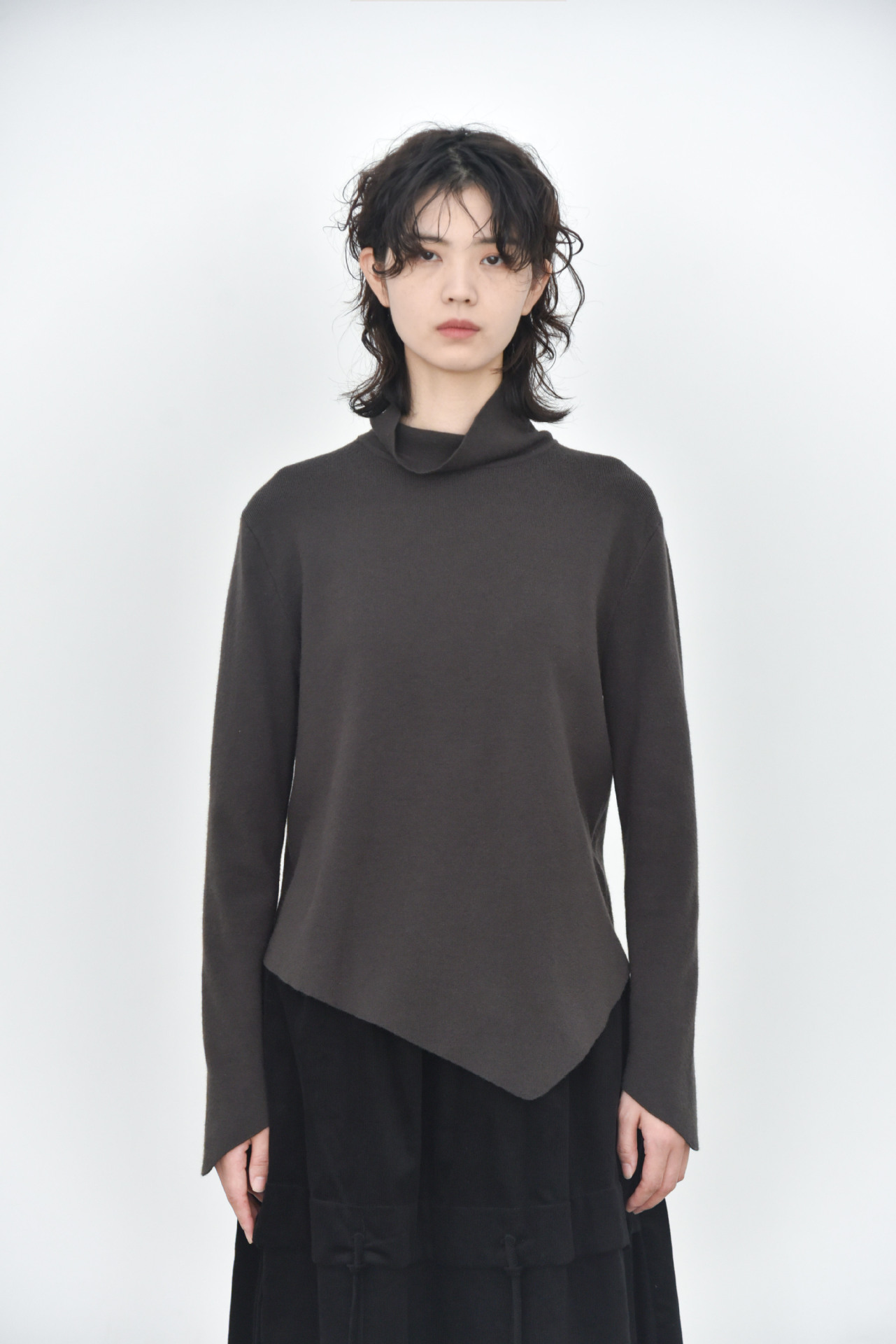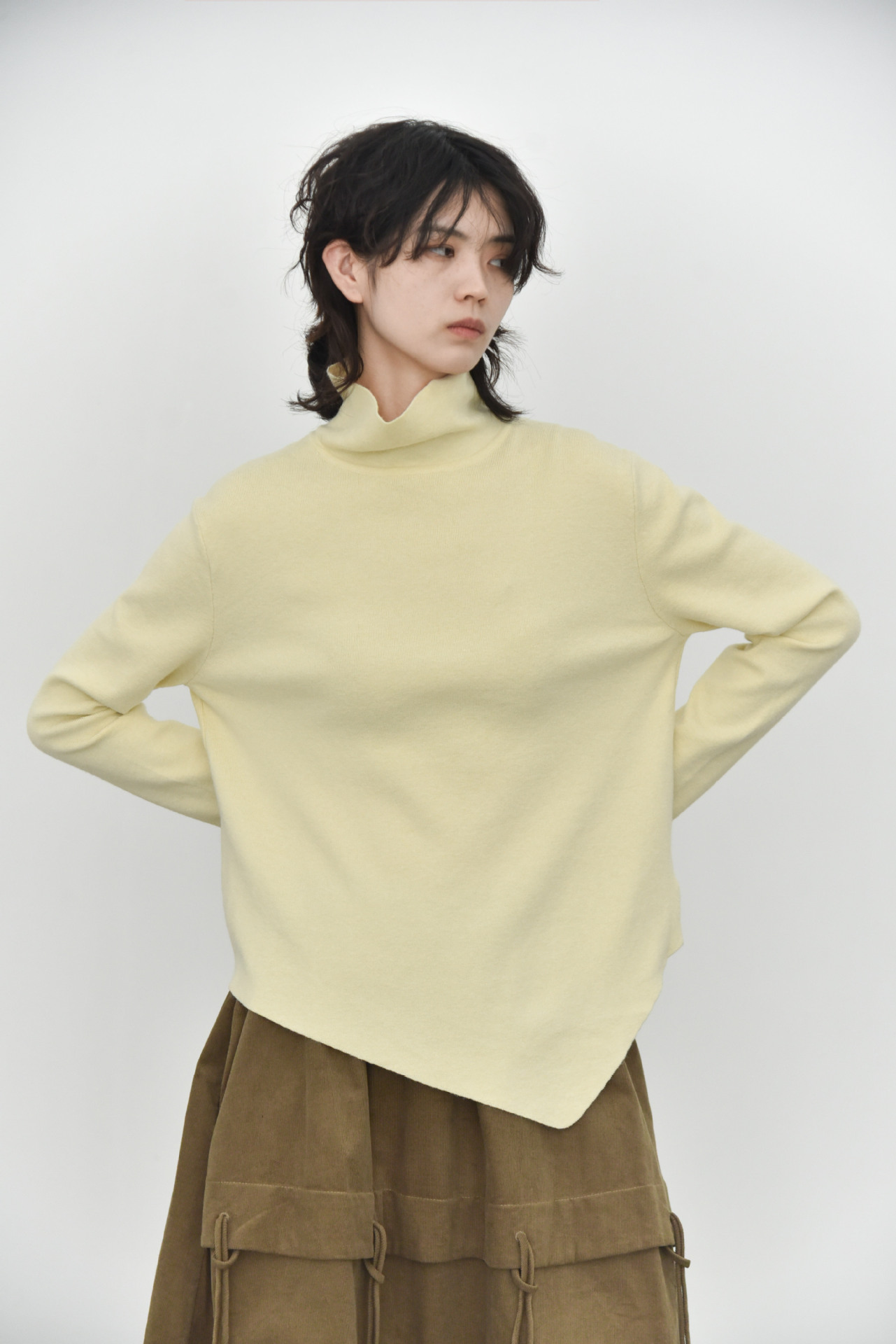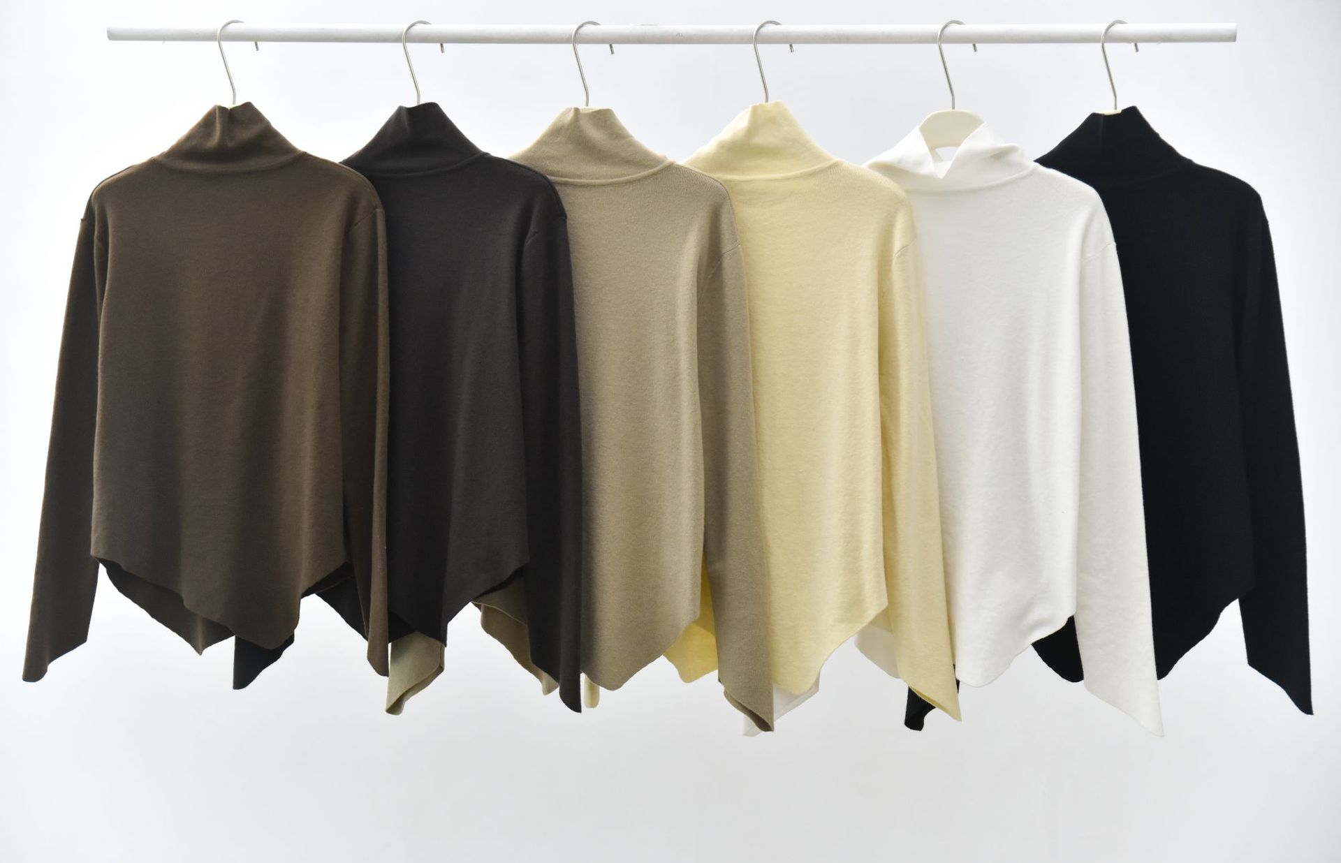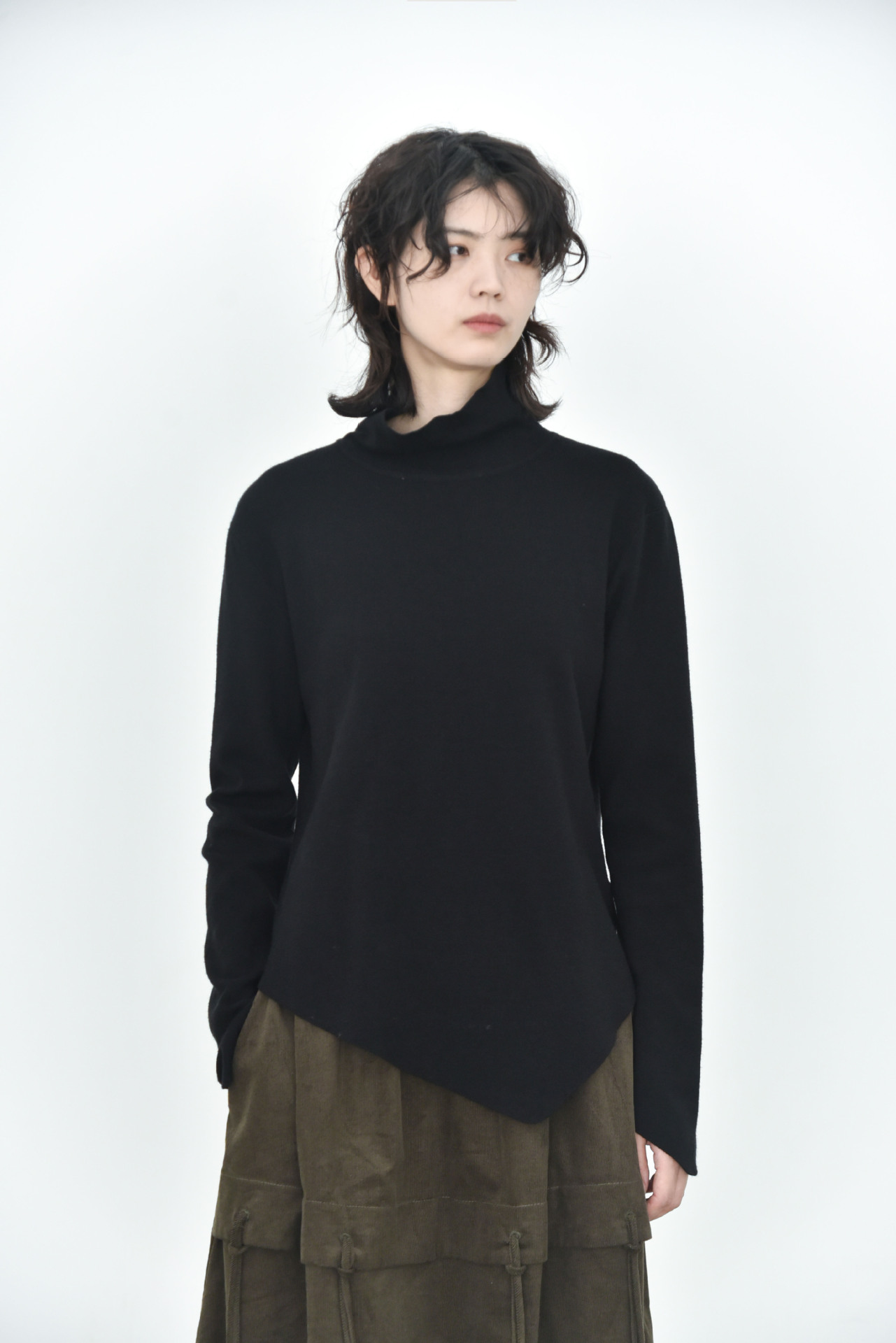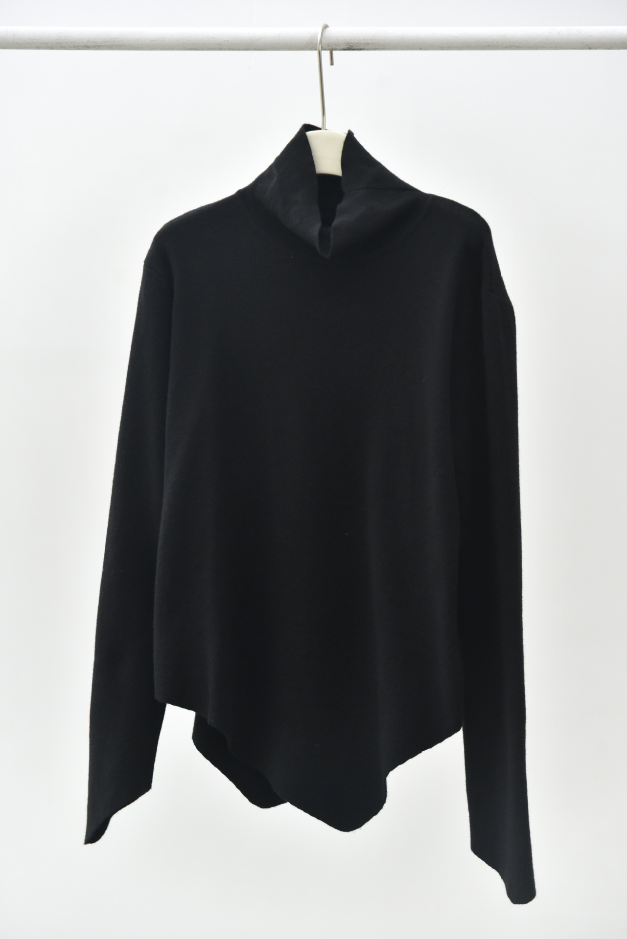 女士秋冬不規則下擺尖角高領打底毛衣