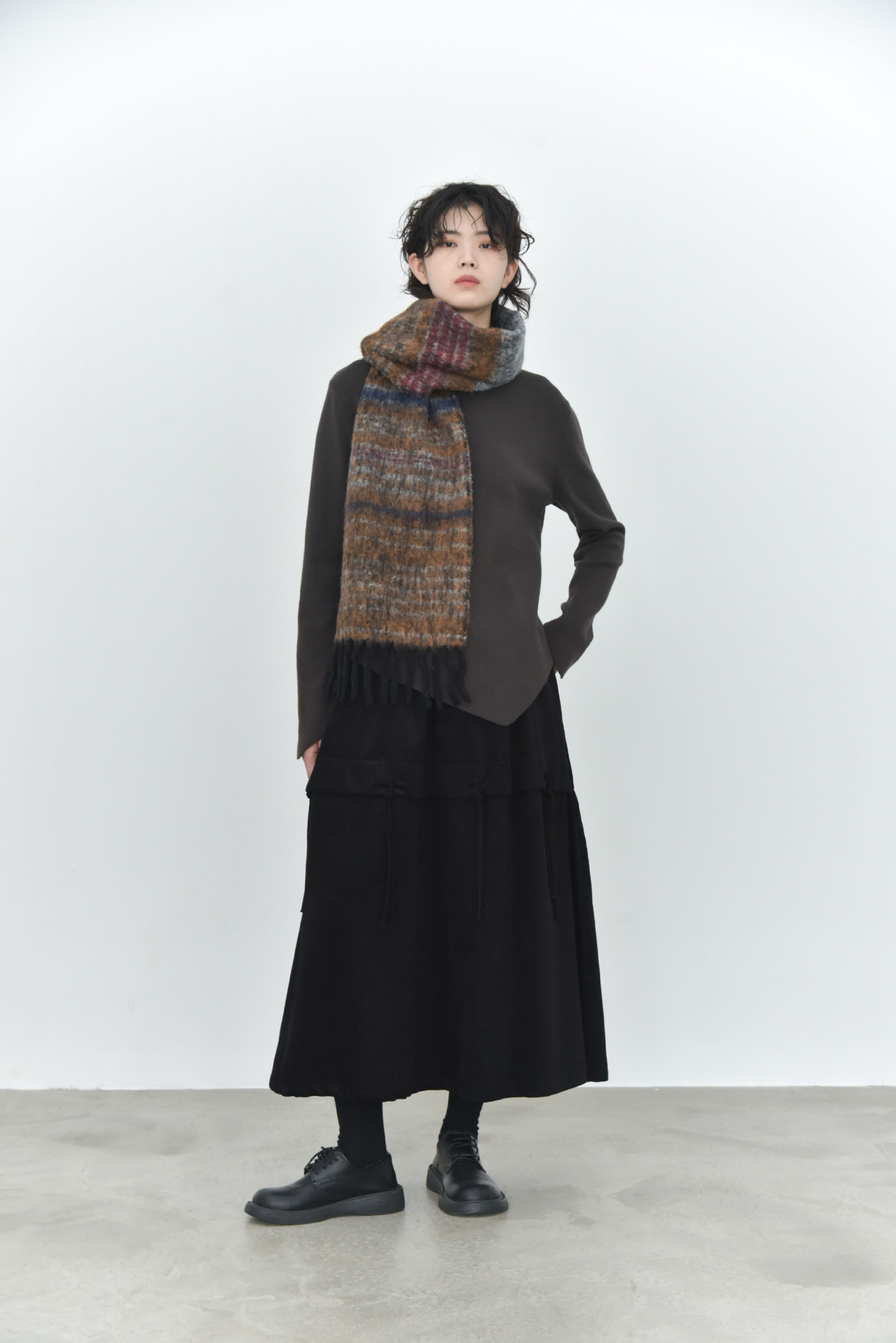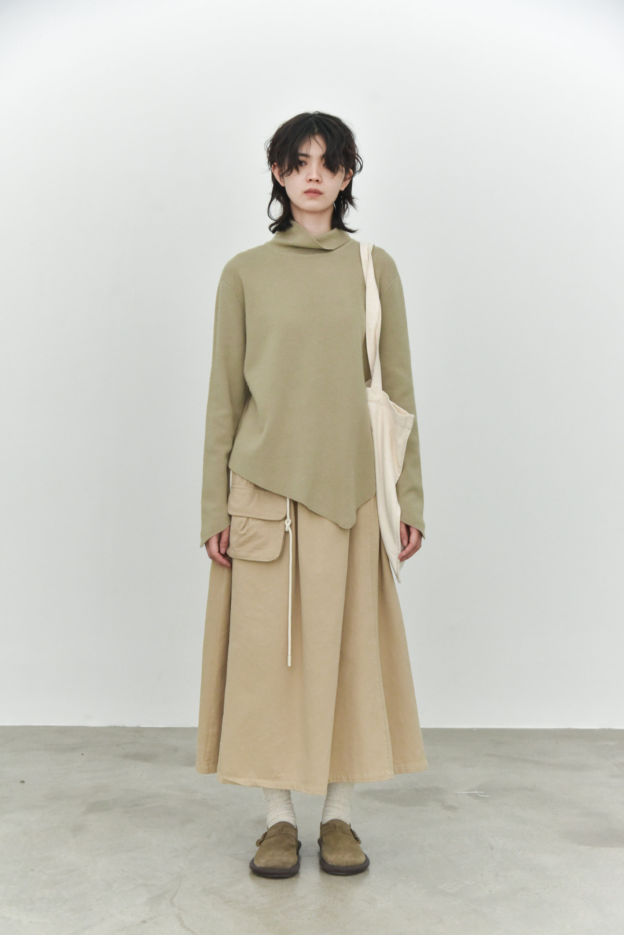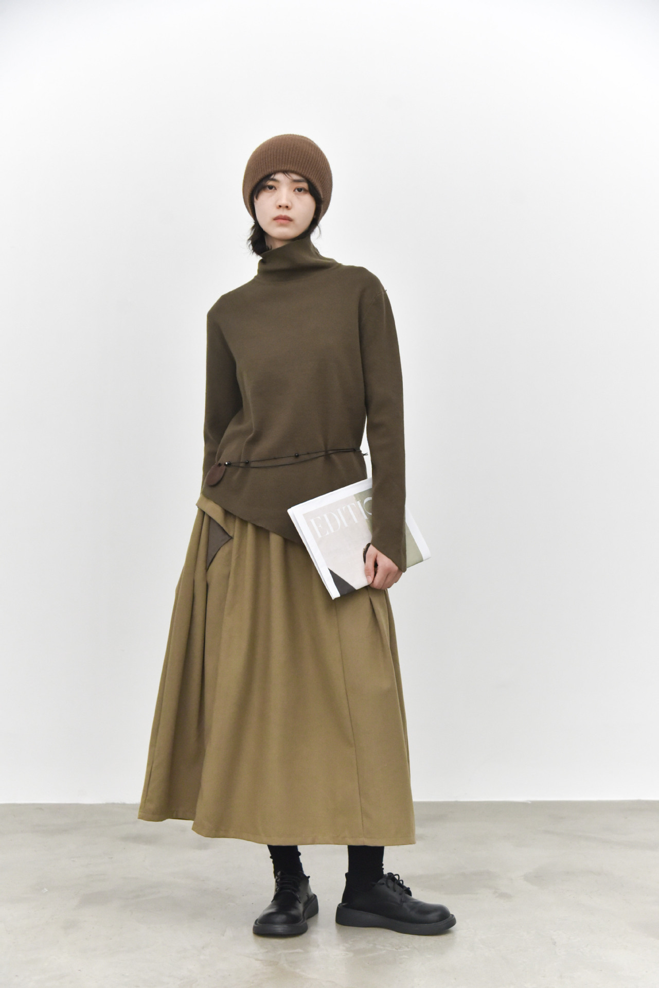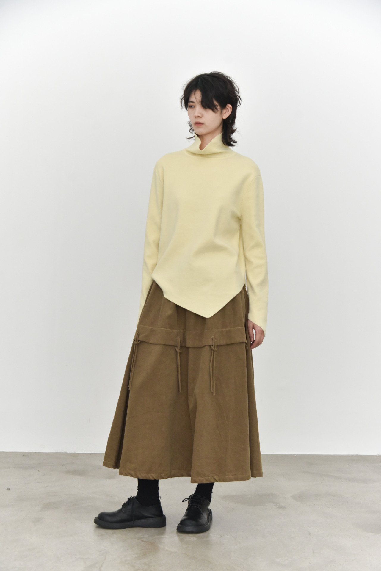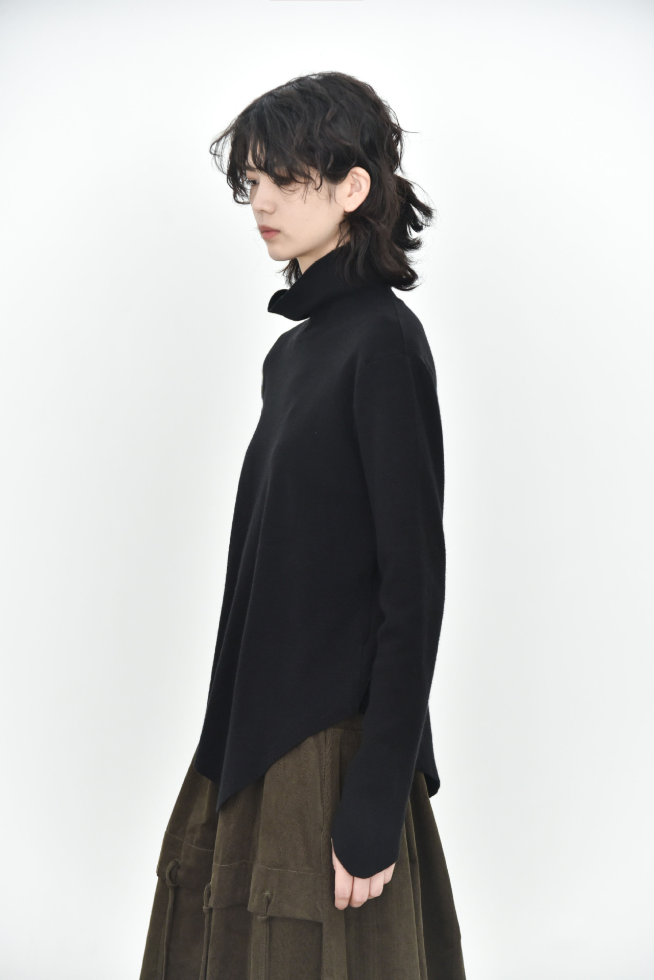 女士秋冬不規則下擺尖角高領打底毛衣