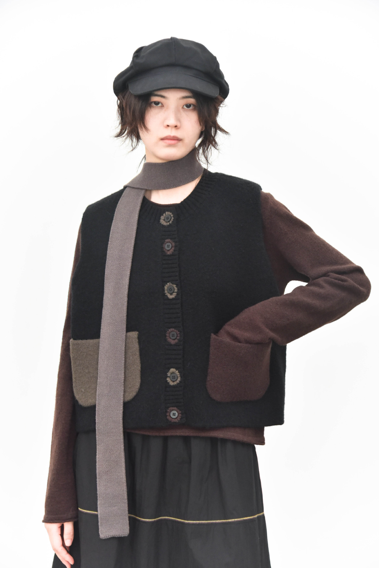 女士秋冬撞色手工扣眼針織馬甲