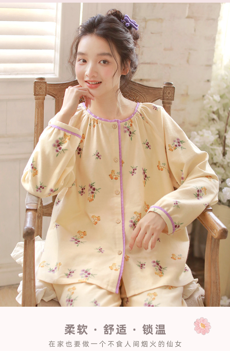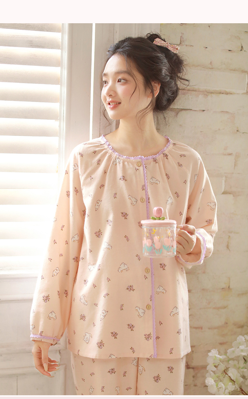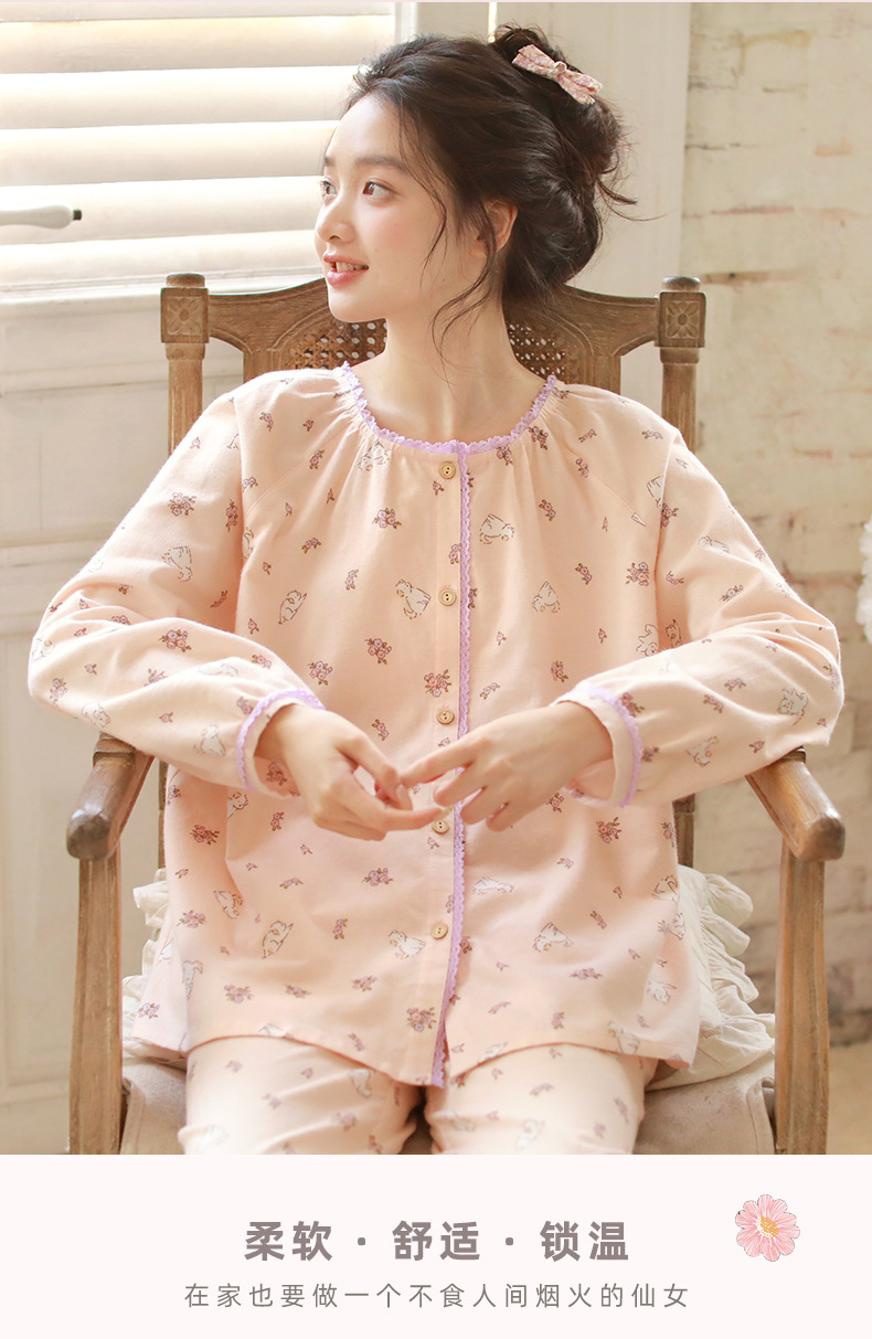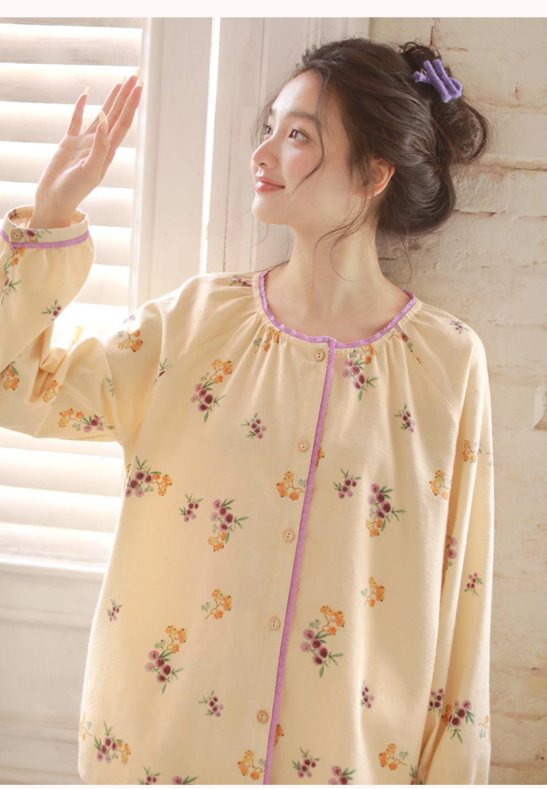 女士秋冬純棉磨毛絨布小狗長袖居家服