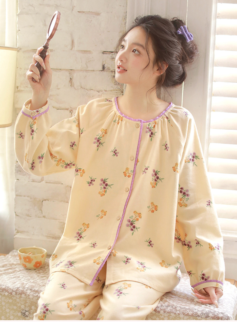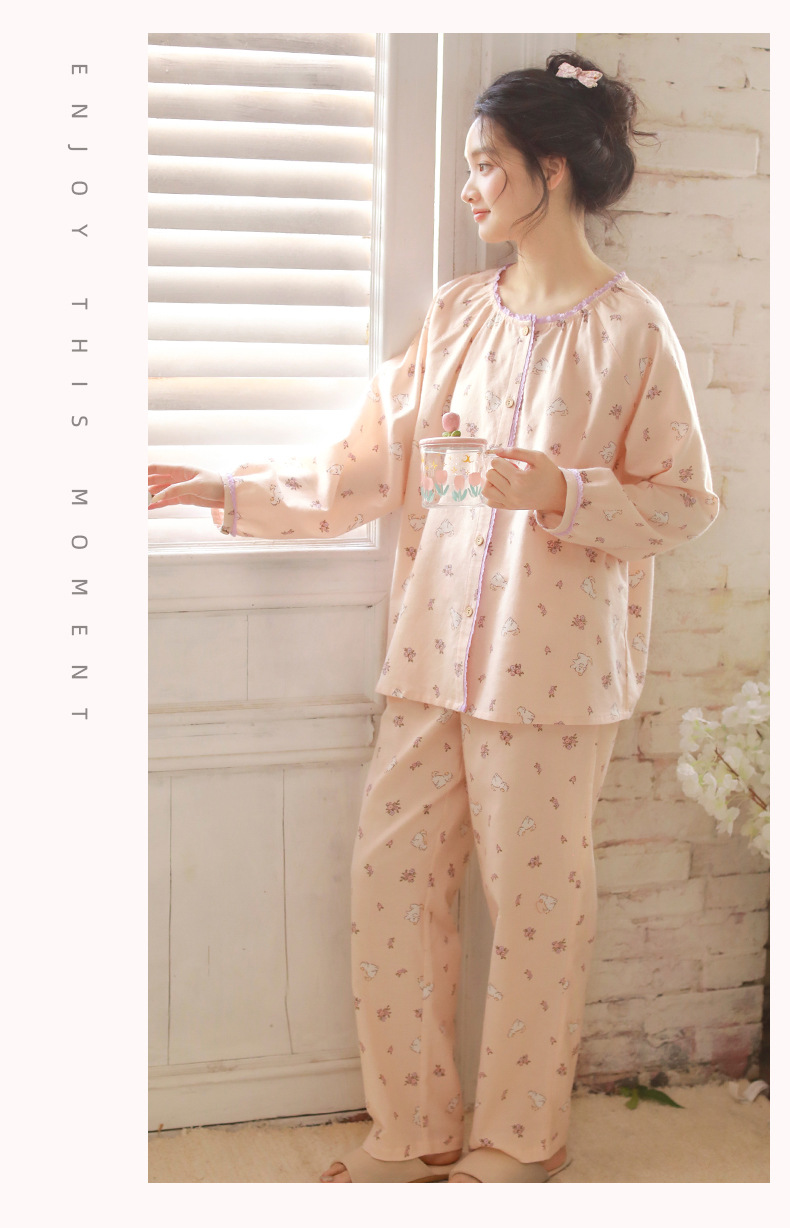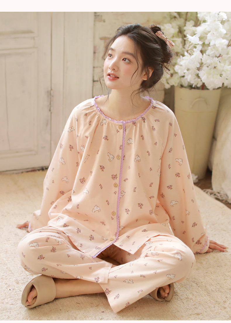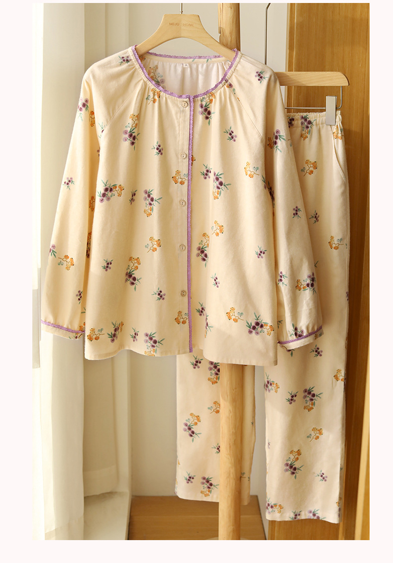 女士秋冬純棉磨毛絨布小狗長袖居家服