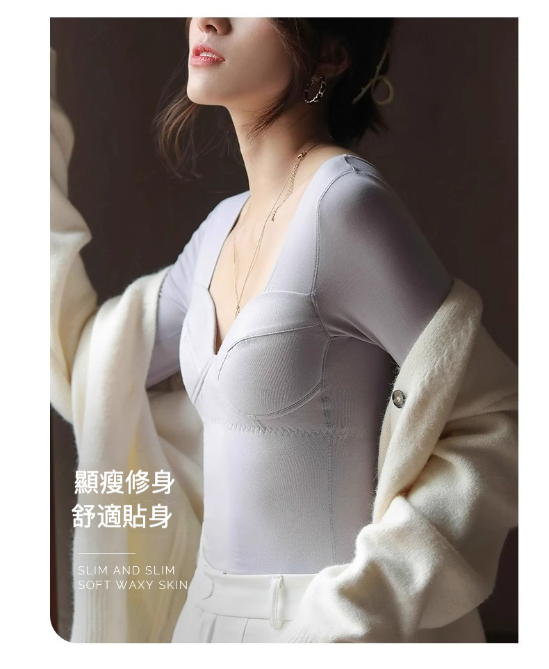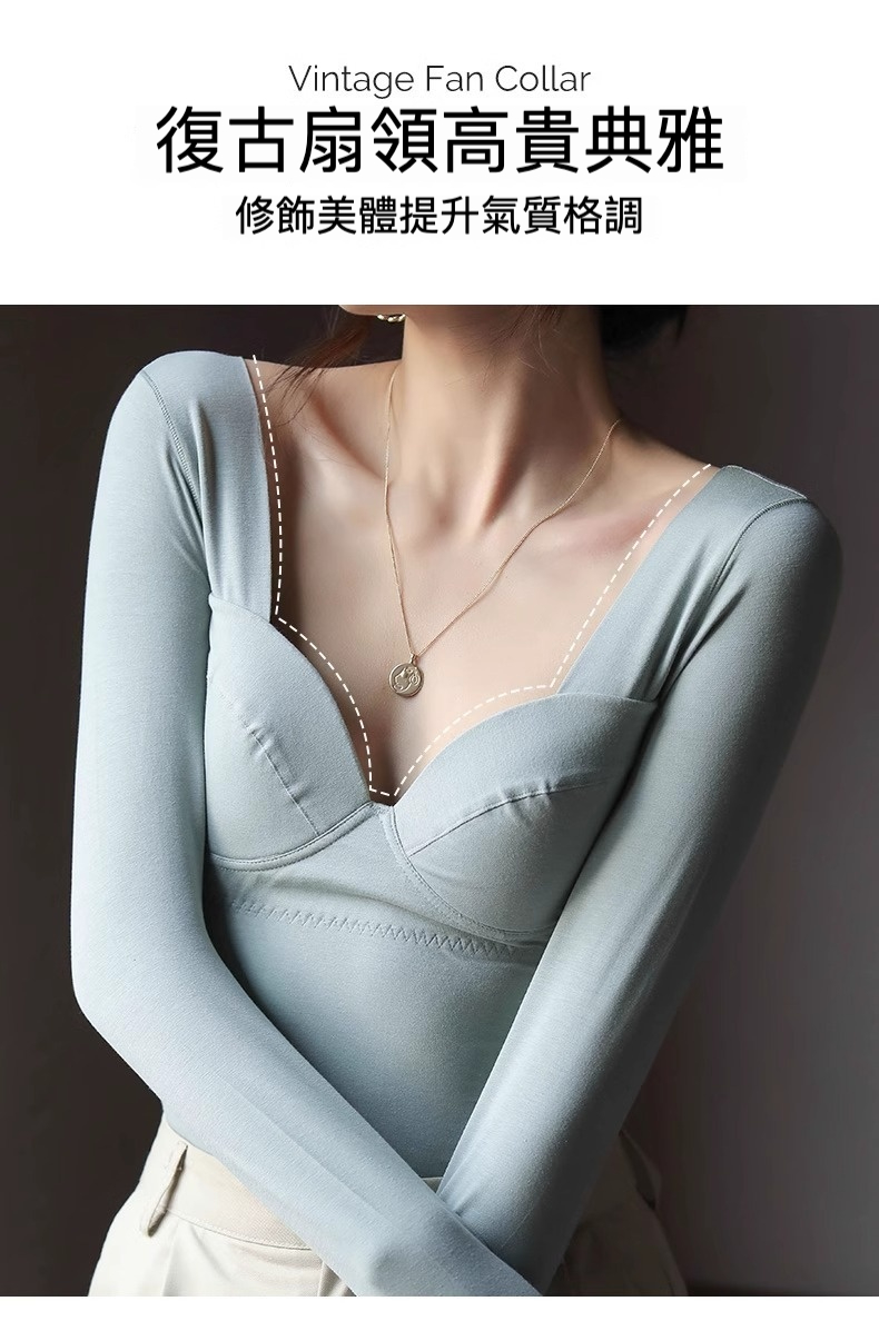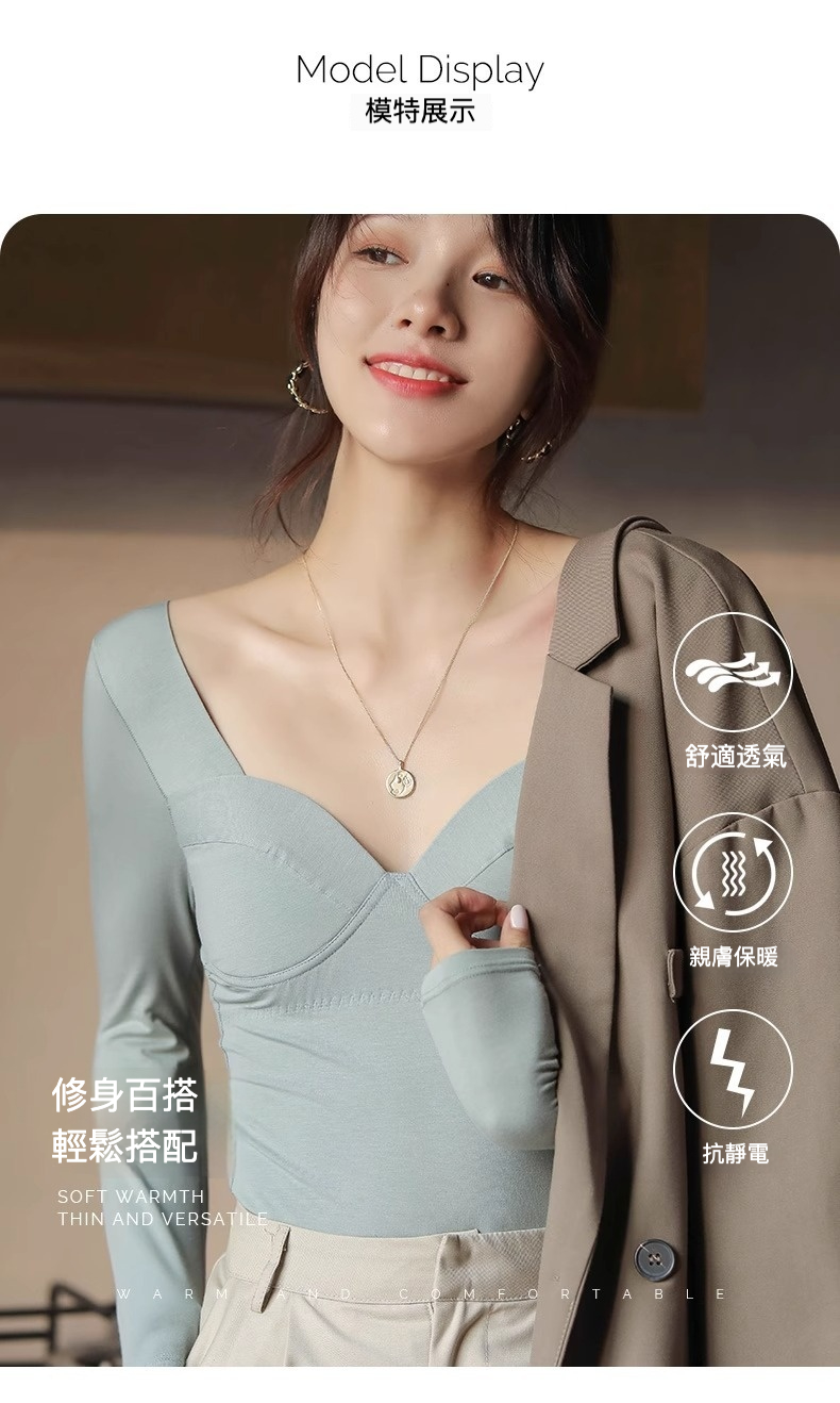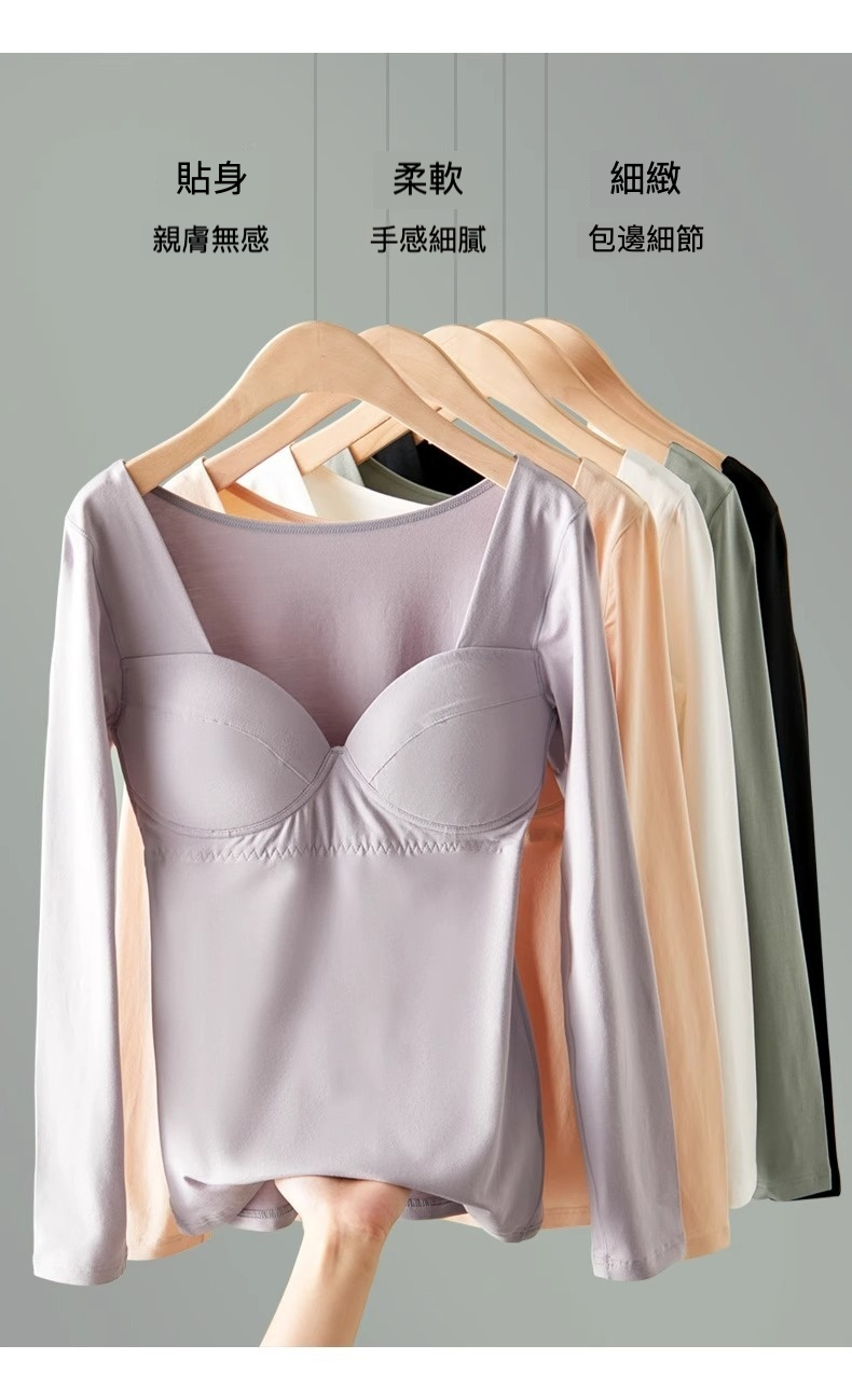 女士秋冬莫代爾帶胸墊打底衫
