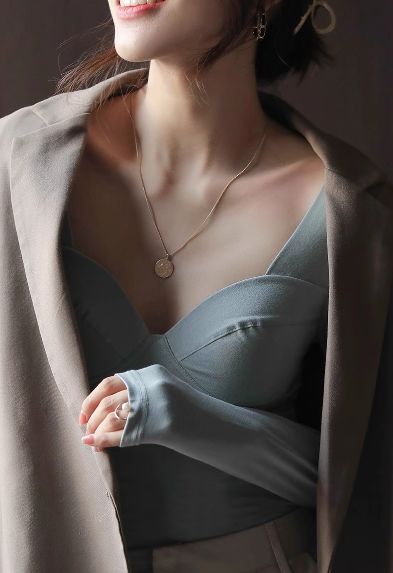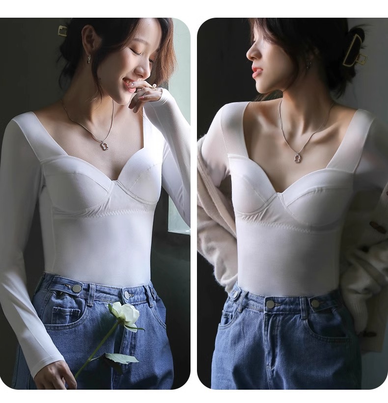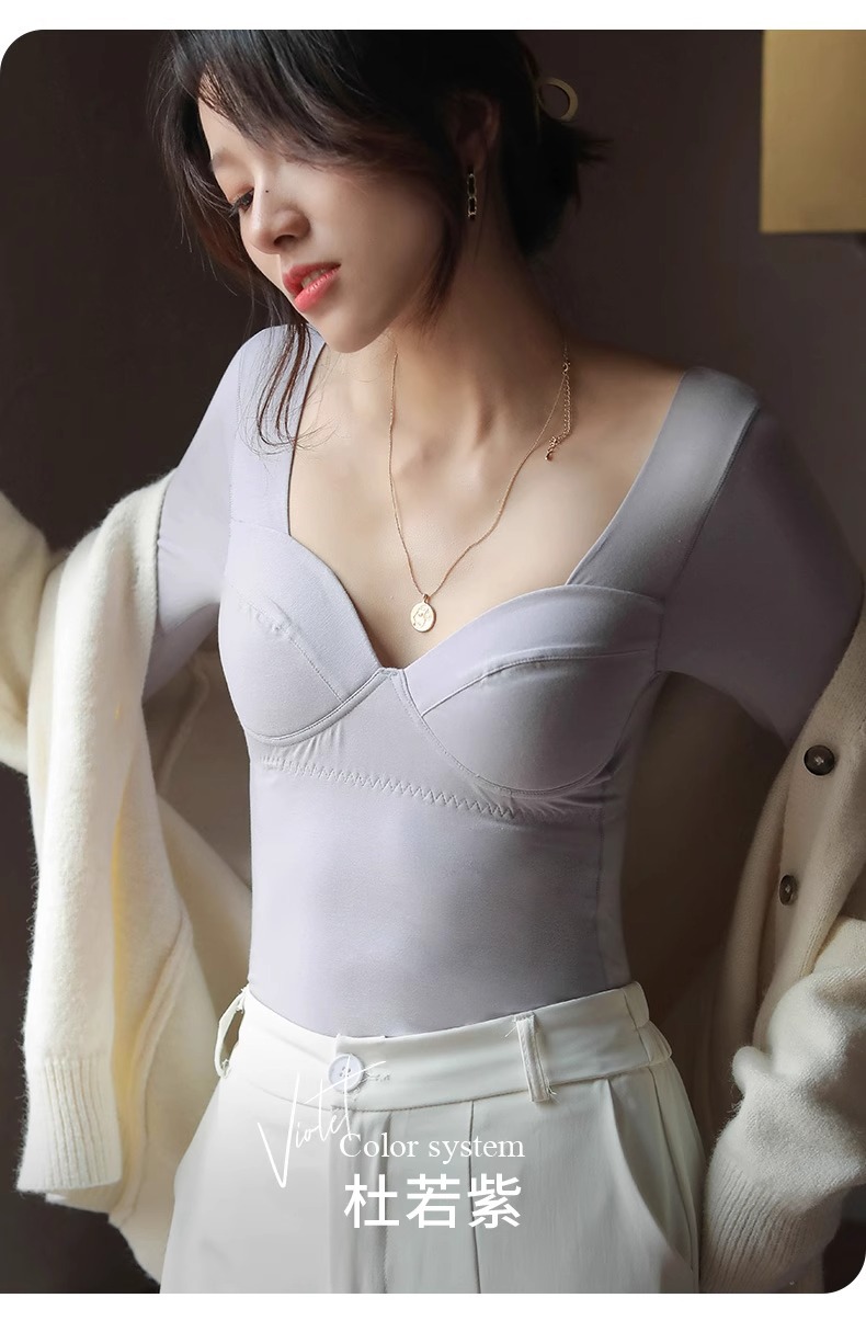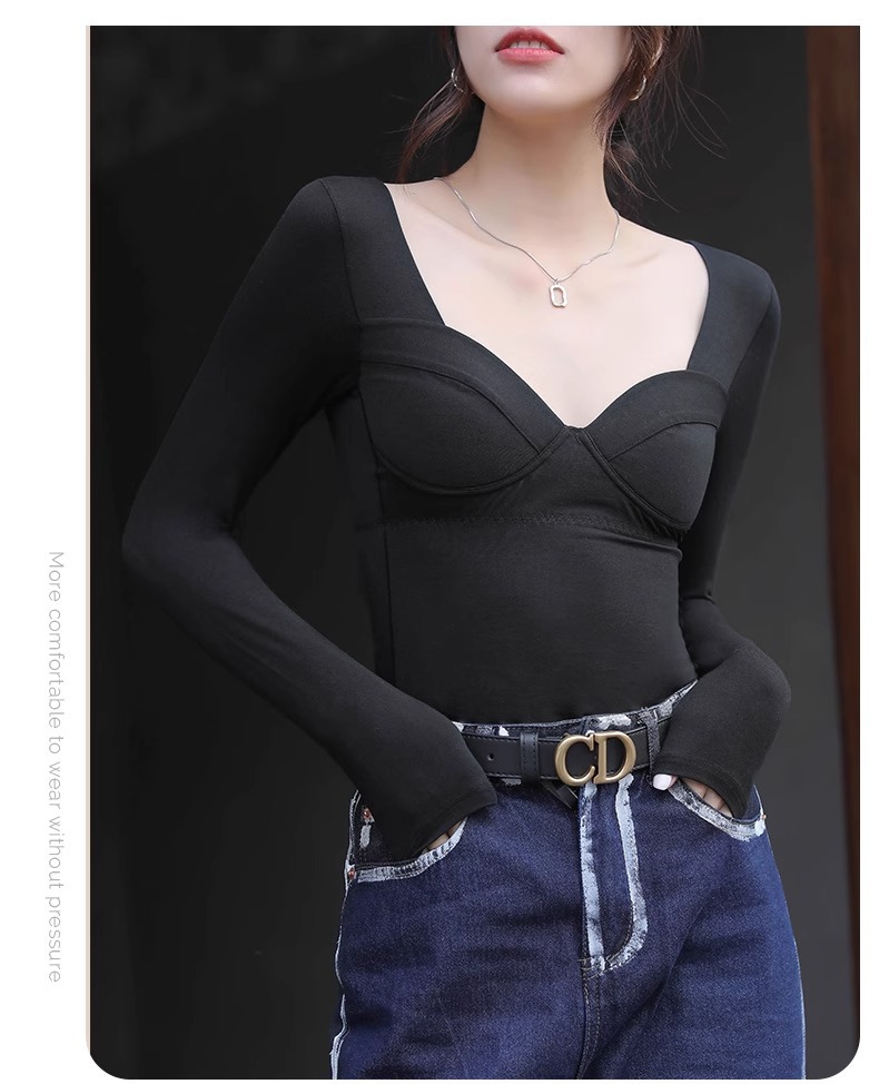 女士秋冬莫代爾帶胸墊打底衫
