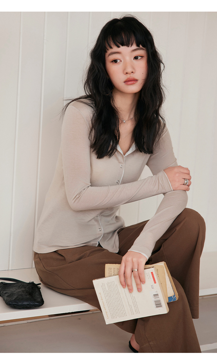 女春夏綿羊毛薄款紐扣開衫
