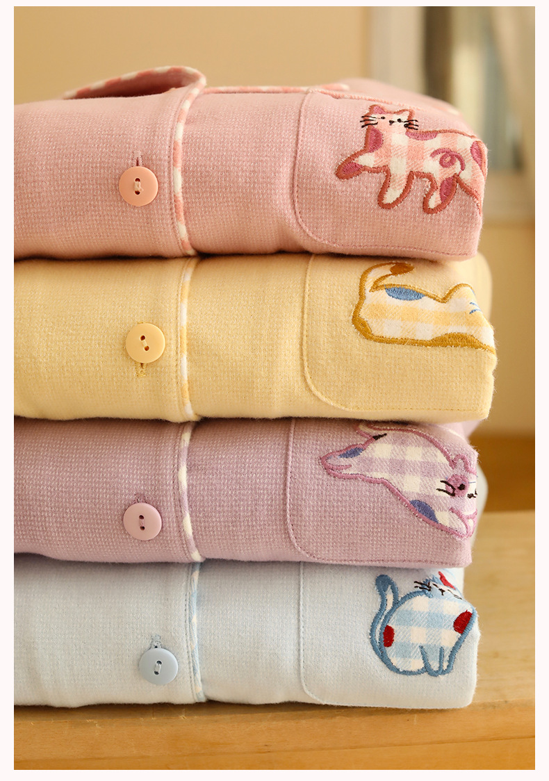 女春秋純棉磨毛貓咪長袖居家服