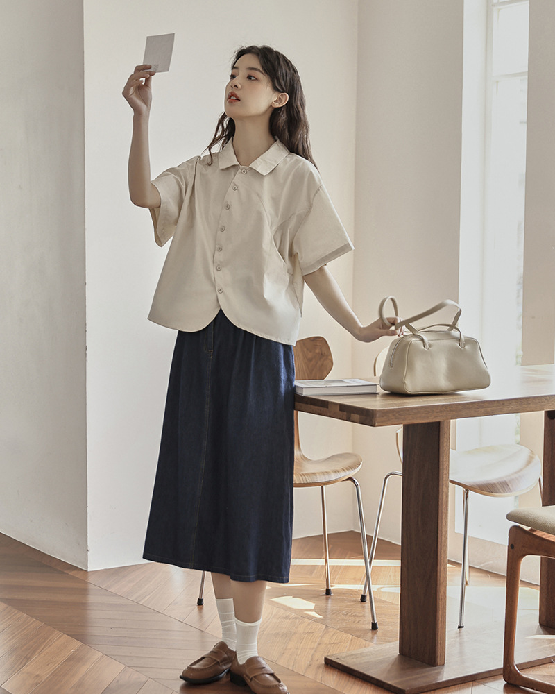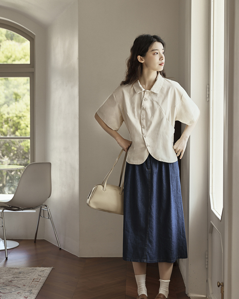 女法式小衆不規則休閒短袖襯衣