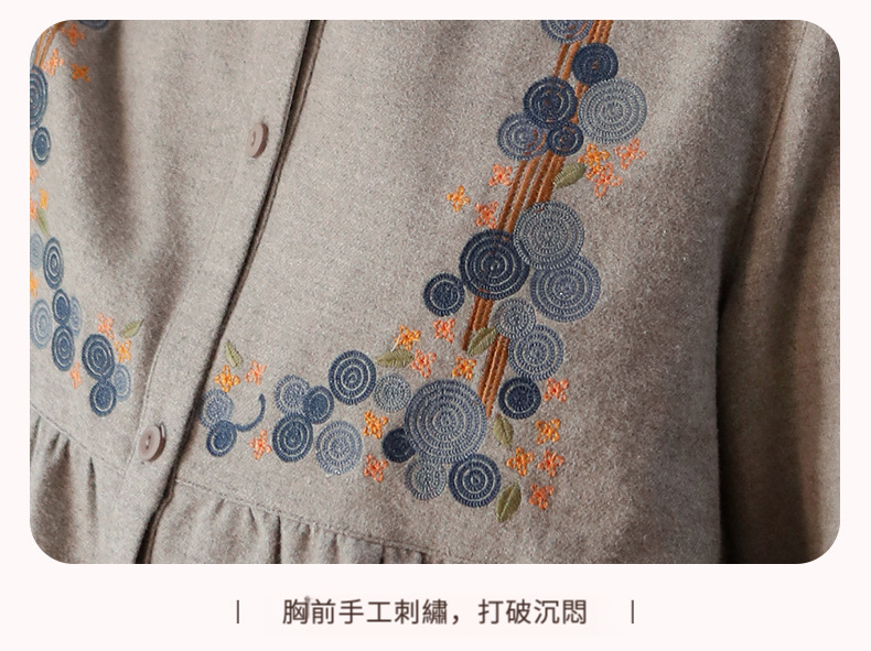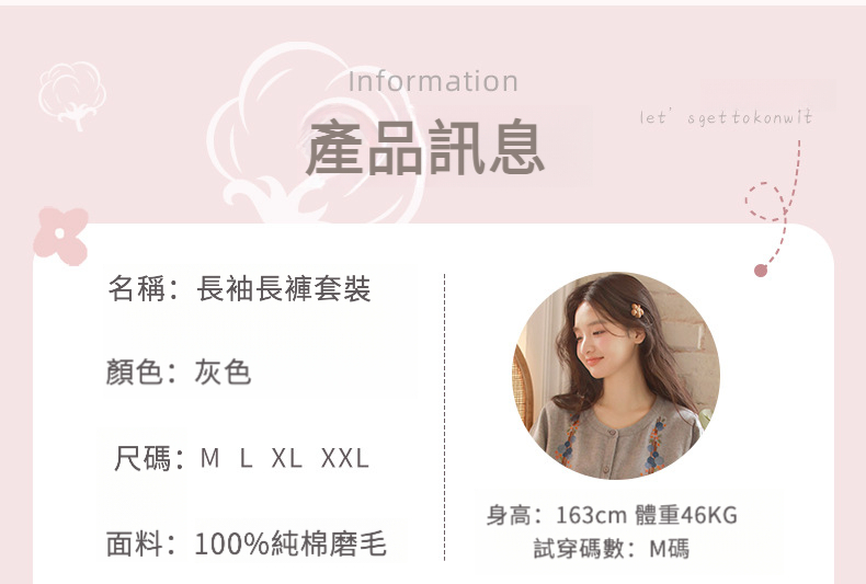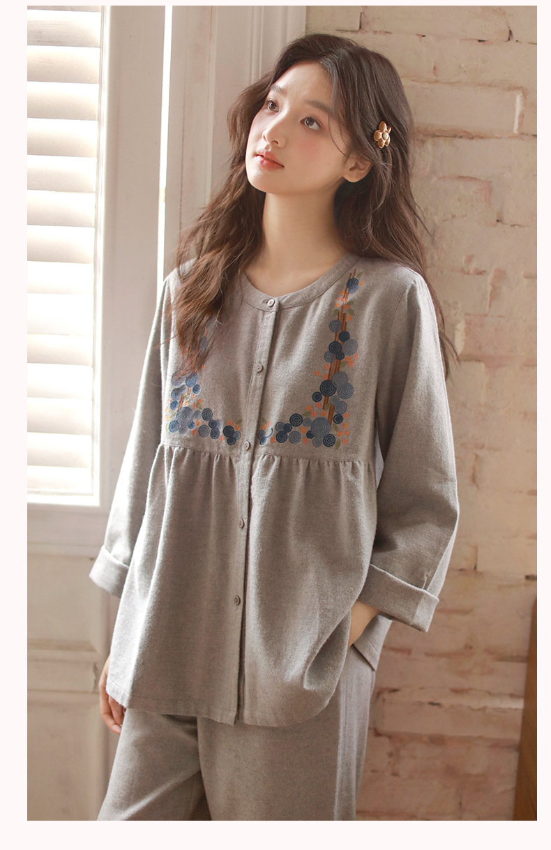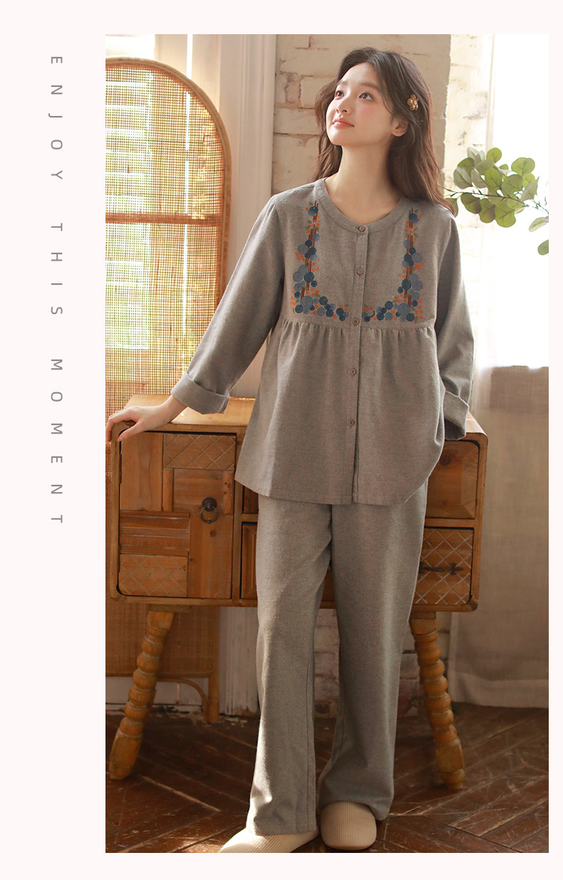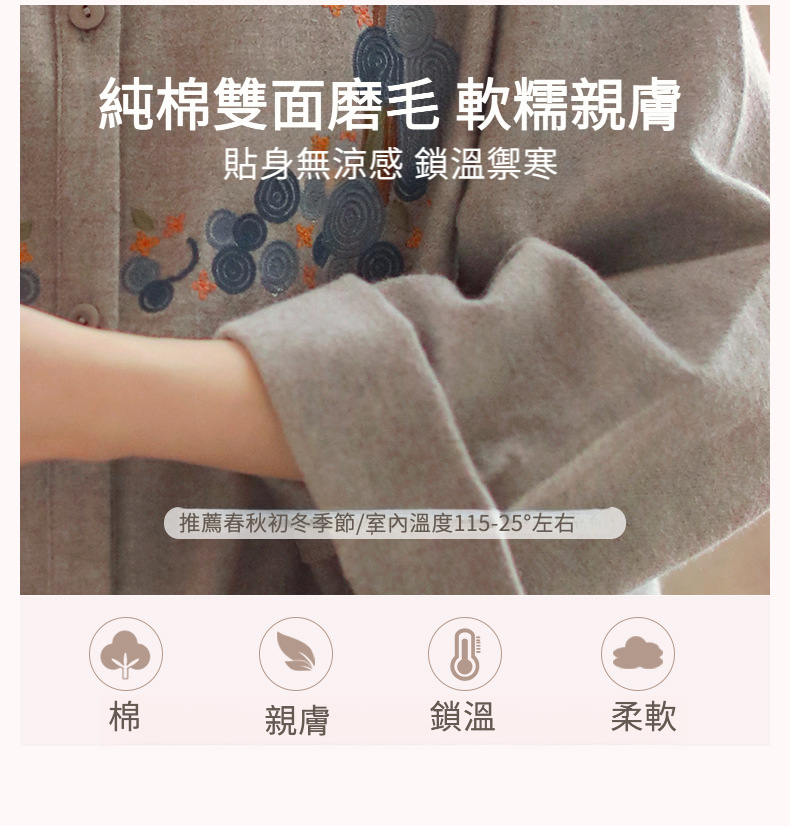 秋冬棉質磨毛刺繡長袖家居服