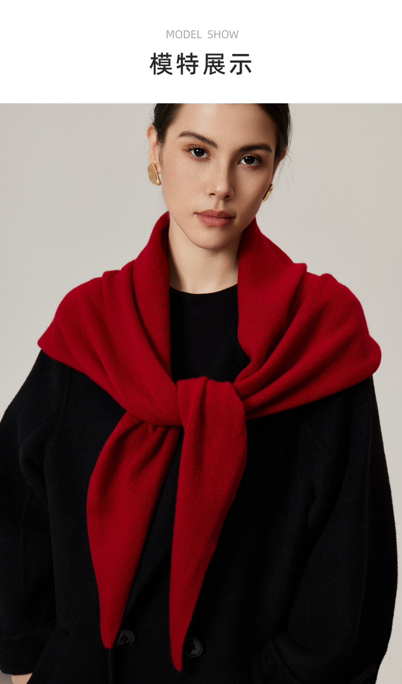 秋冬100%羊毛針織三角圍巾